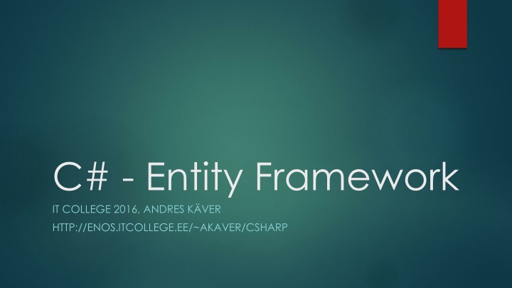 C# - Entity Framework IT COLLEGE 2016, ANDRES K VER HTTP://ENOS.ITCOLLEGE.EE/~AKAVER/CSHARP