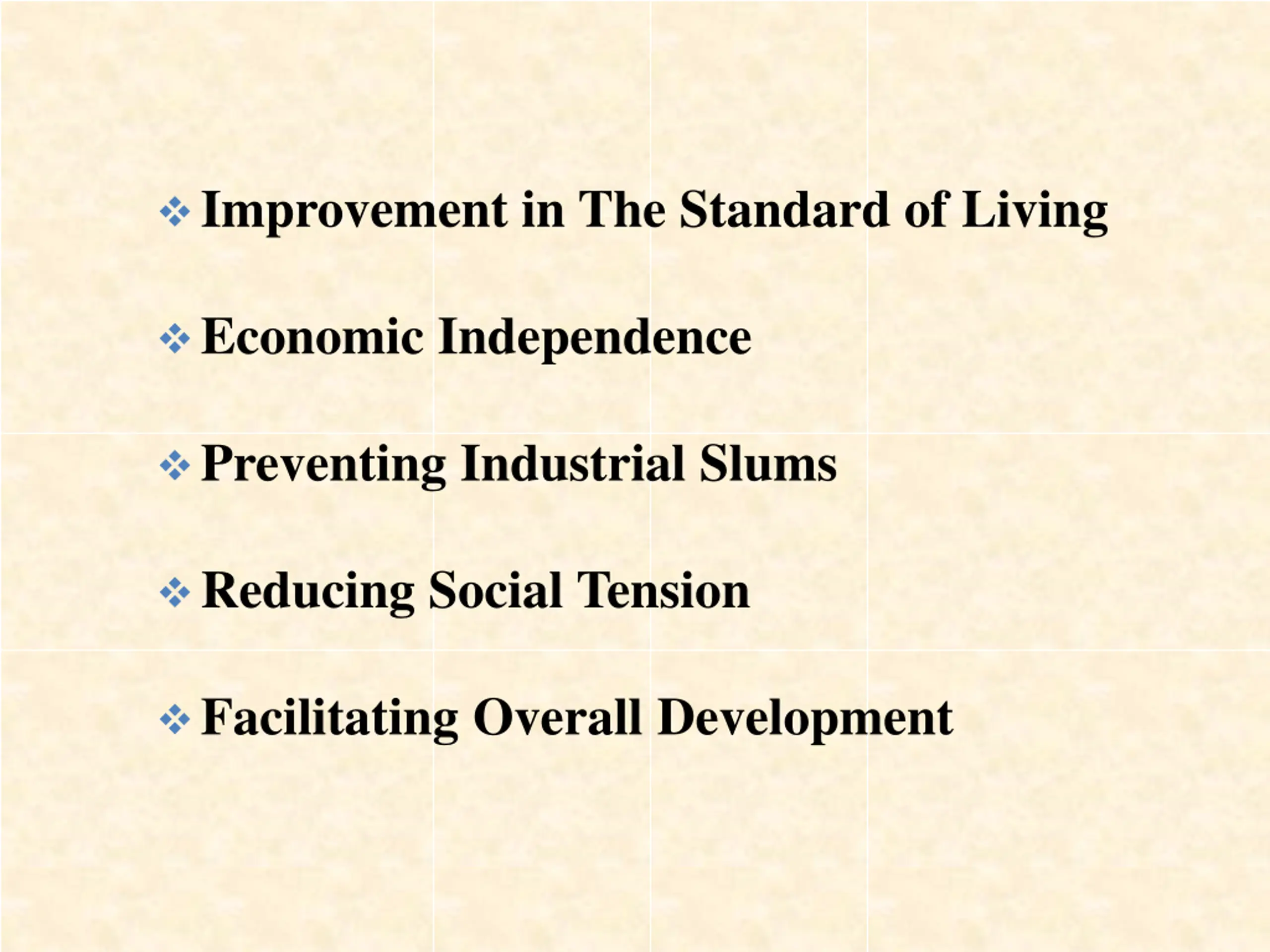 Improvement in The Standard of Living Economic Independence Preventing Industrial Slums Reducing Social Tension Facilitating Overall Development