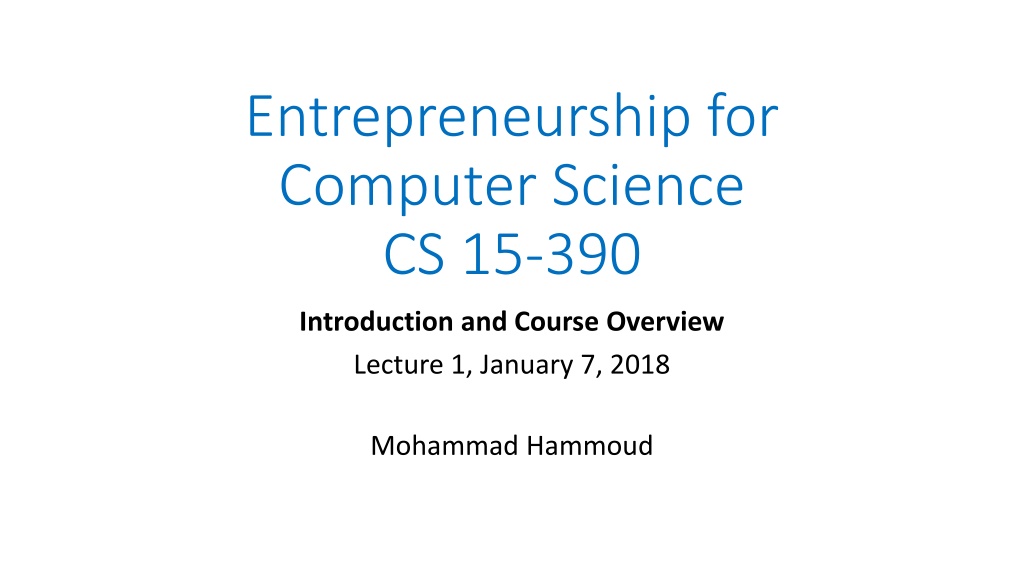 Entrepreneurship for Computer Science CS 15-390 Introduction and Course Overview Lecture 1, January 7, 2018 Mohammad Hammoud