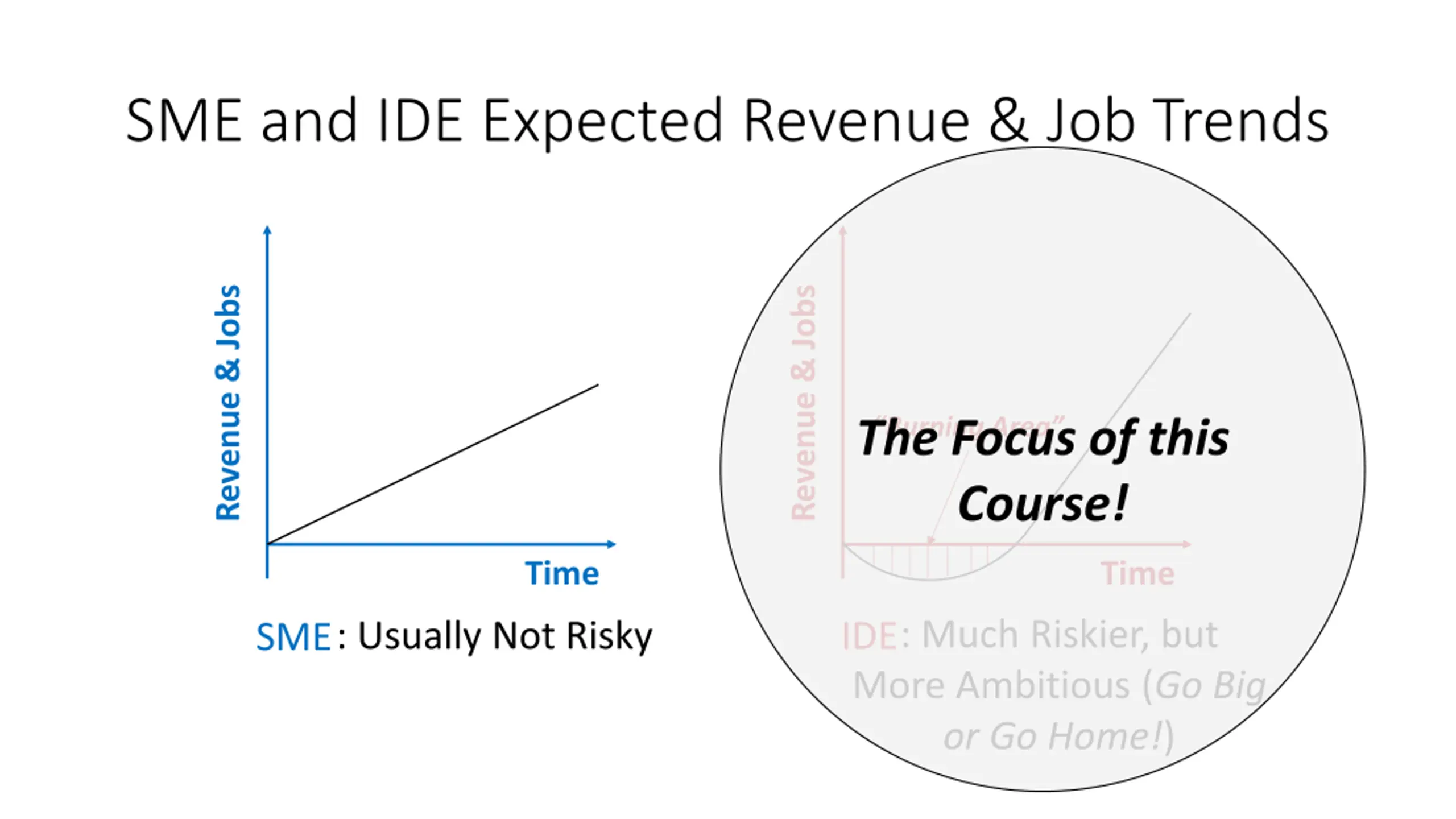 SME and IDE Expected Revenue & Job Trends Revenue & Jobs Revenue & Jobs Burning Area The Focus of this Course! Time Time : Much Riskier, but : Usually Not Risky IDE More Ambitious (Go Big or Go Home!) SME