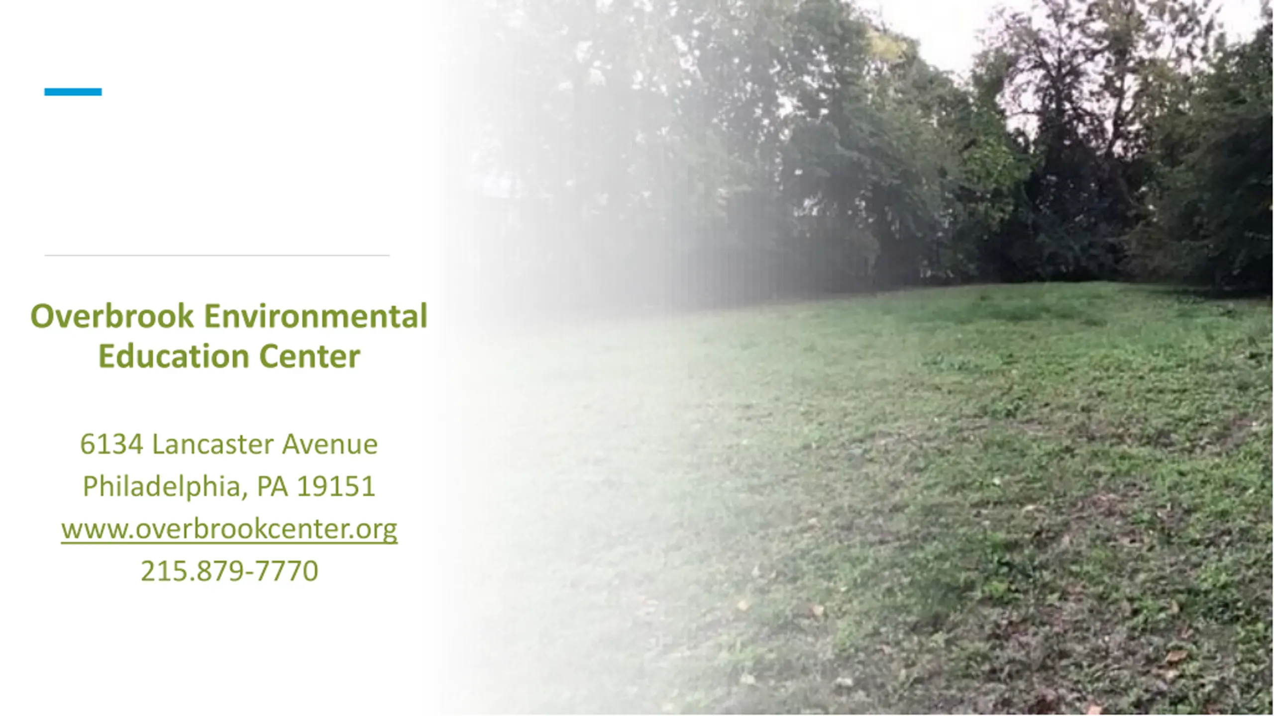 Overbrook Environmental Education Center 6134 Lancaster Avenue Philadelphia, PA 19151 www.overbrookcenter.org 215.879-7770