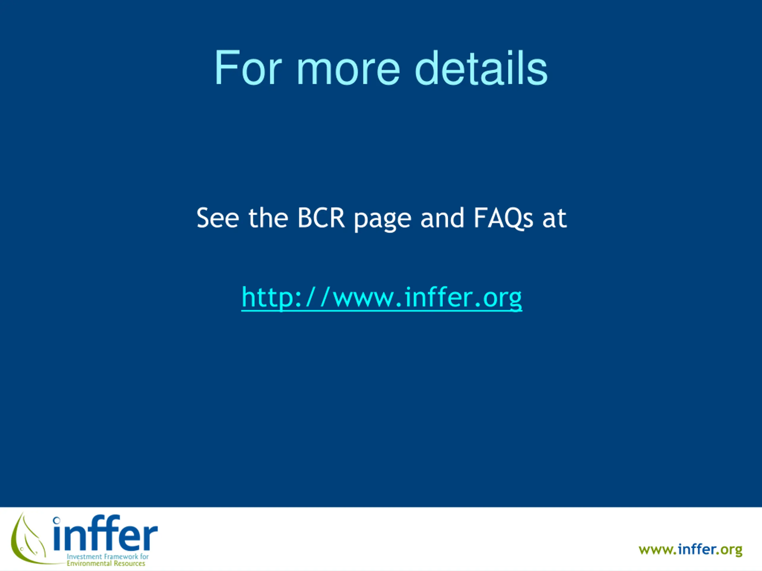 For more details See the BCR page and FAQs at http://www.inffer.org www.inffer.org