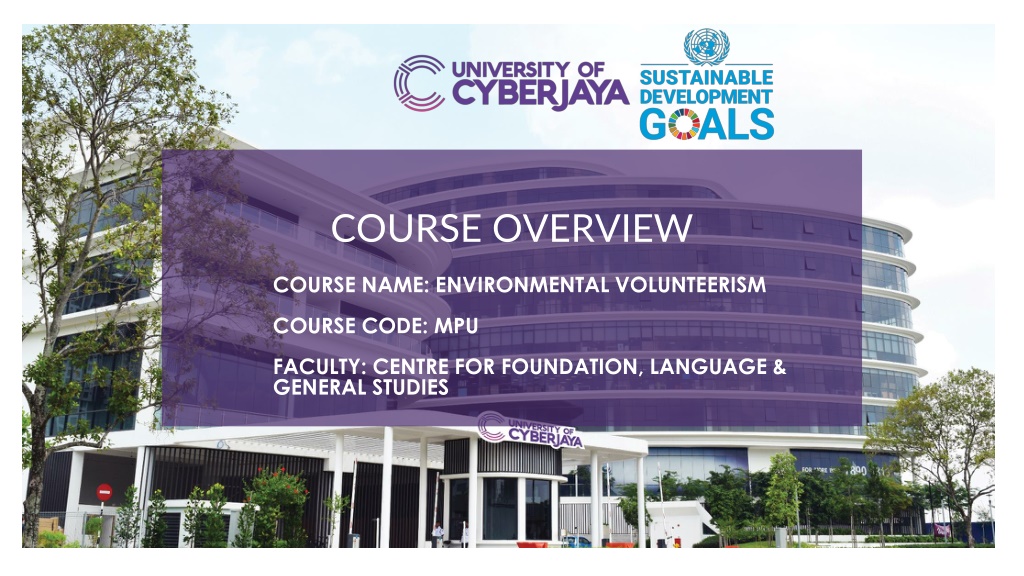 COURSE OVERVIEW COURSE NAME: ENVIRONMENTAL VOLUNTEERISM COURSE CODE: MPU FACULTY: CENTRE FOR FOUNDATION, LANGUAGE & GENERAL STUDIES