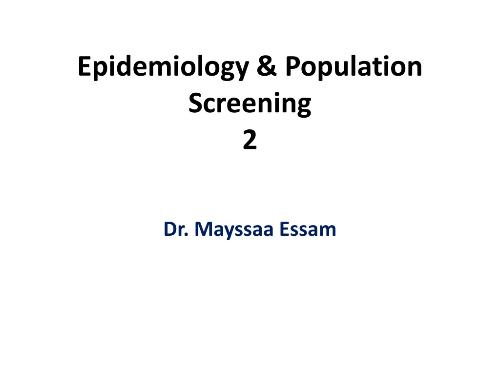Epidemiology & Population Screening 2 Dr. Mayssaa Essam
