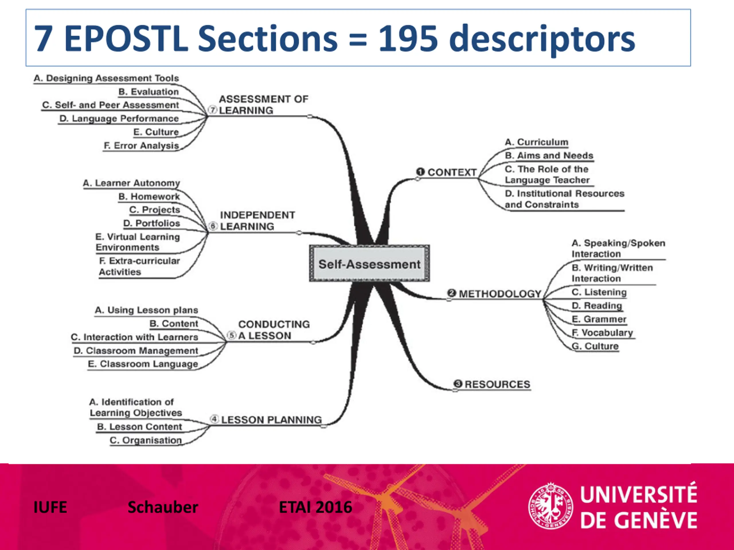 7 EPOSTL Sections = 195 descriptors IUFE Schauber ETAI 2016