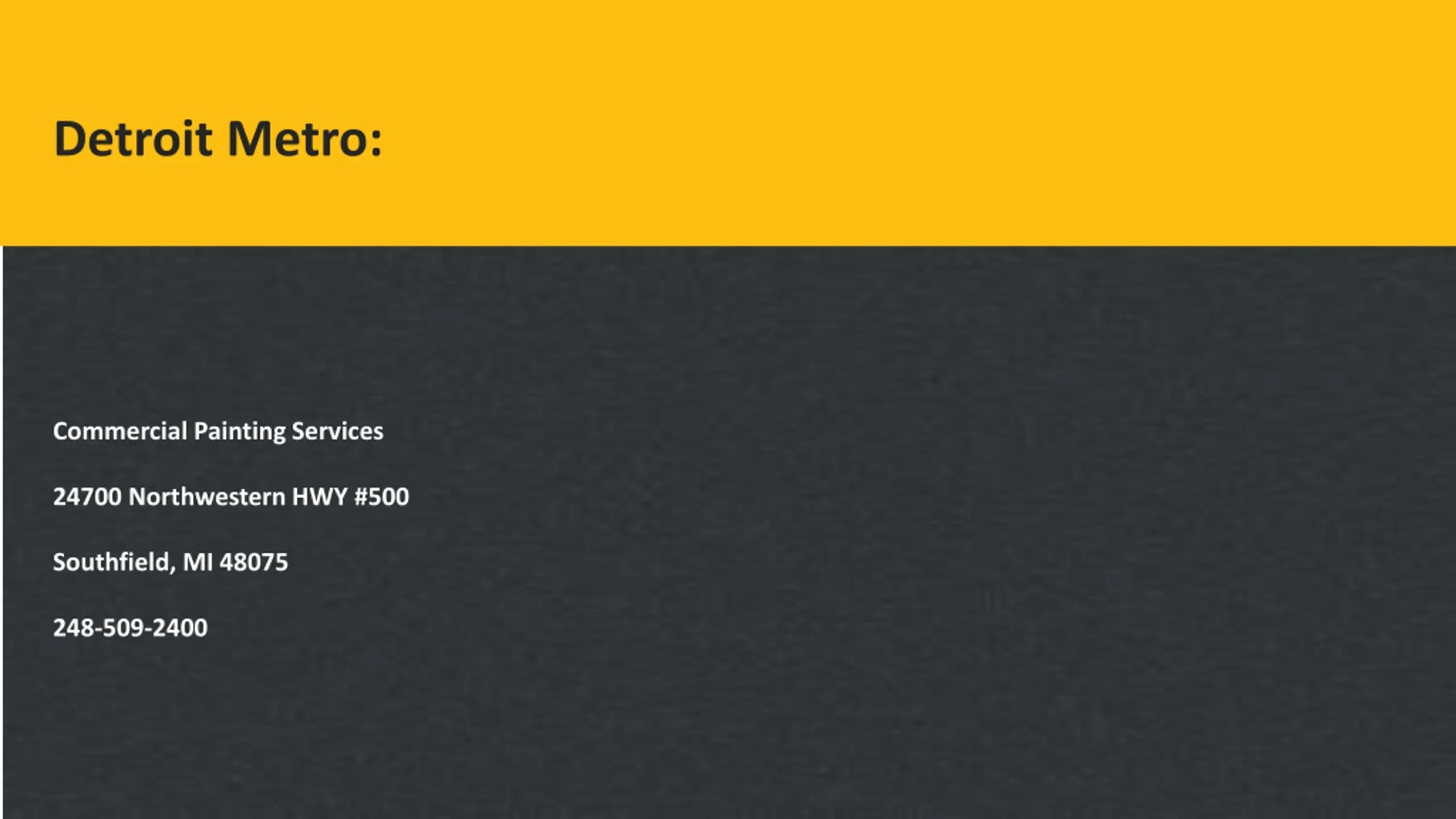 Detroit Metro: Commercial Painting Services 24700 Northwestern HWY #500 Southfield, MI 48075 248-509-2400