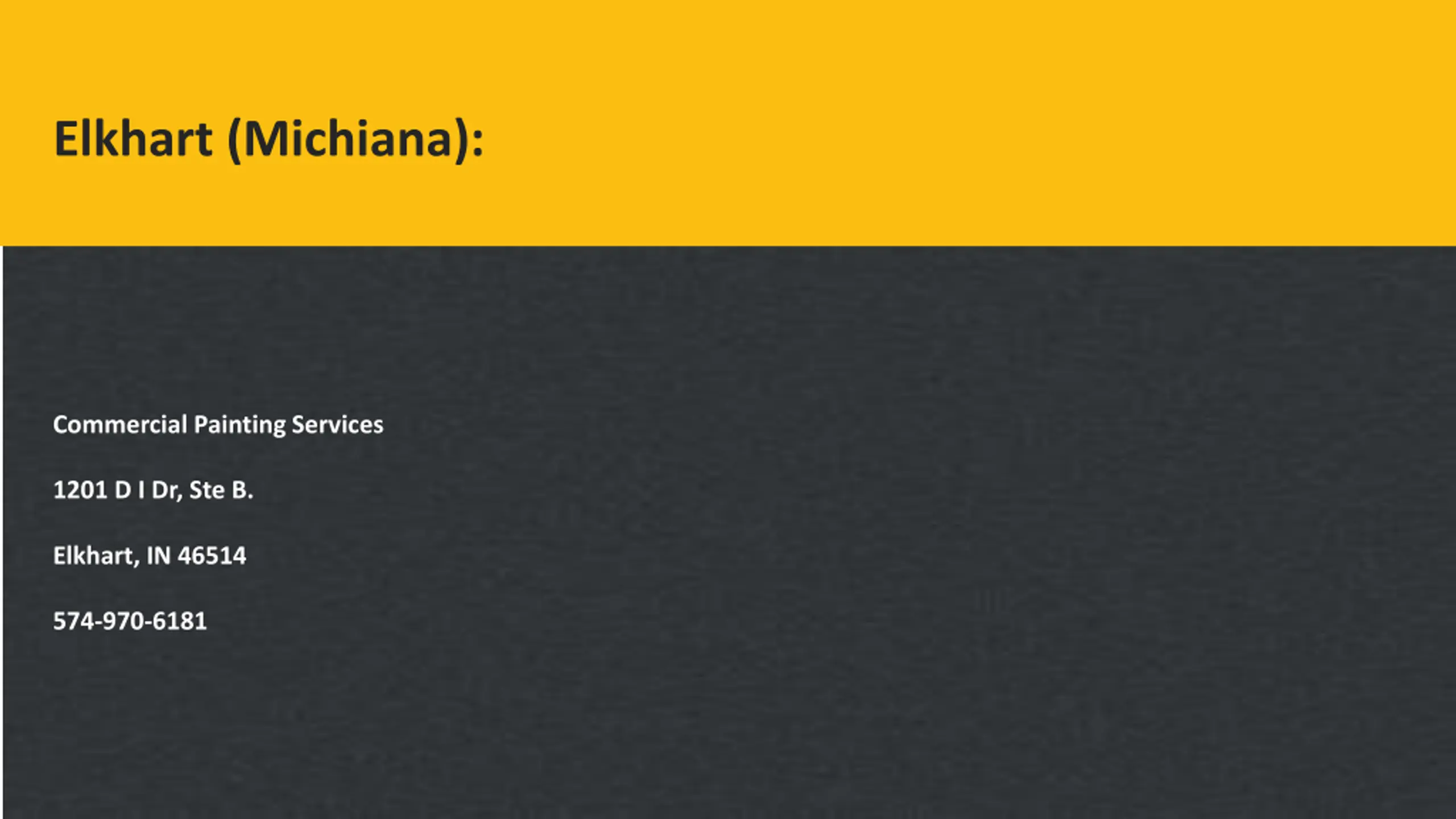 Elkhart (Michiana): Commercial Painting Services 1201 D I Dr, Ste B. Elkhart, IN 46514 574-970-6181