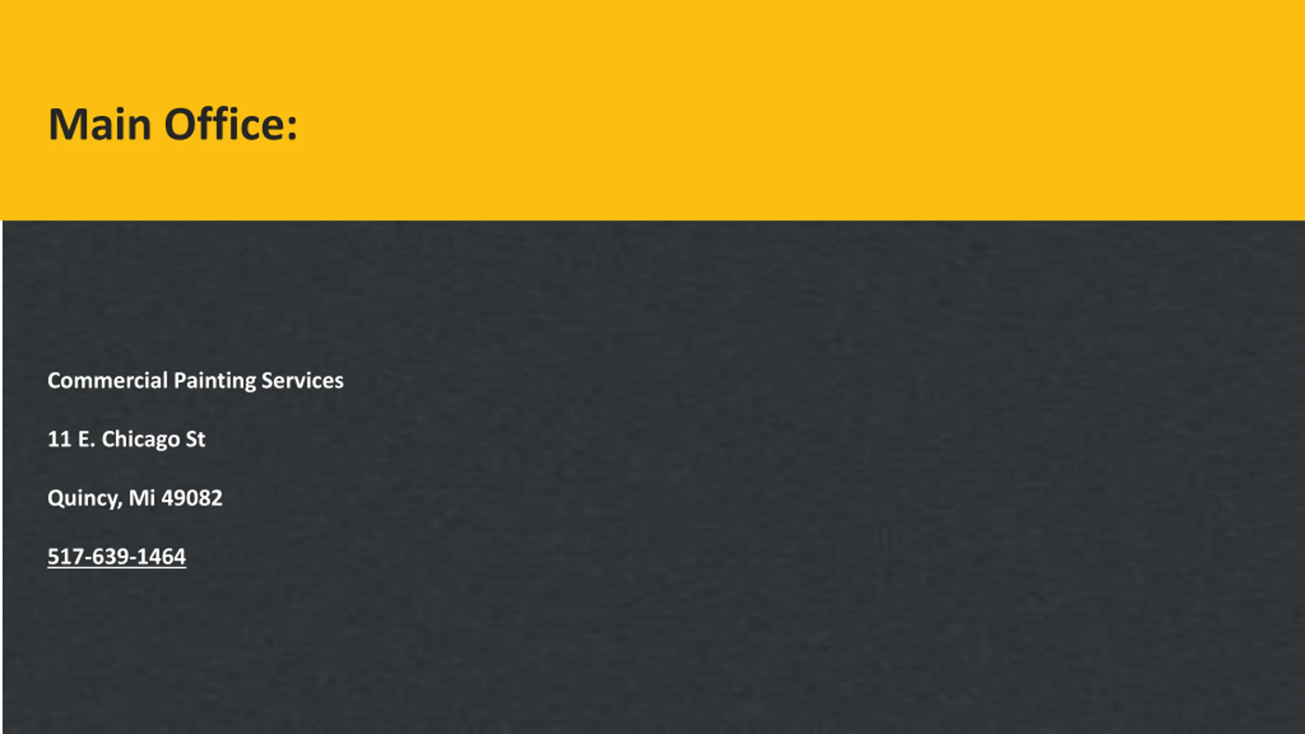 Main Office: Commercial Painting Services 11 E. Chicago St Quincy, Mi 49082 517-639-1464