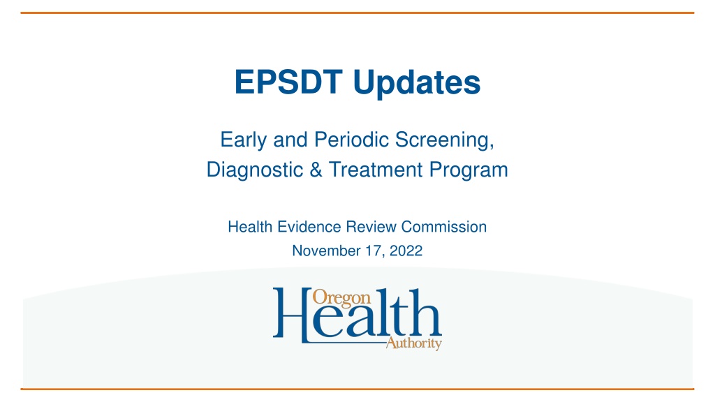 EPSDT Updates Early and Periodic Screening, Diagnostic & Treatment Program Health Evidence Review Commission November 17, 2022 HEALTH POLICY AND ANALYTICS DIVISION