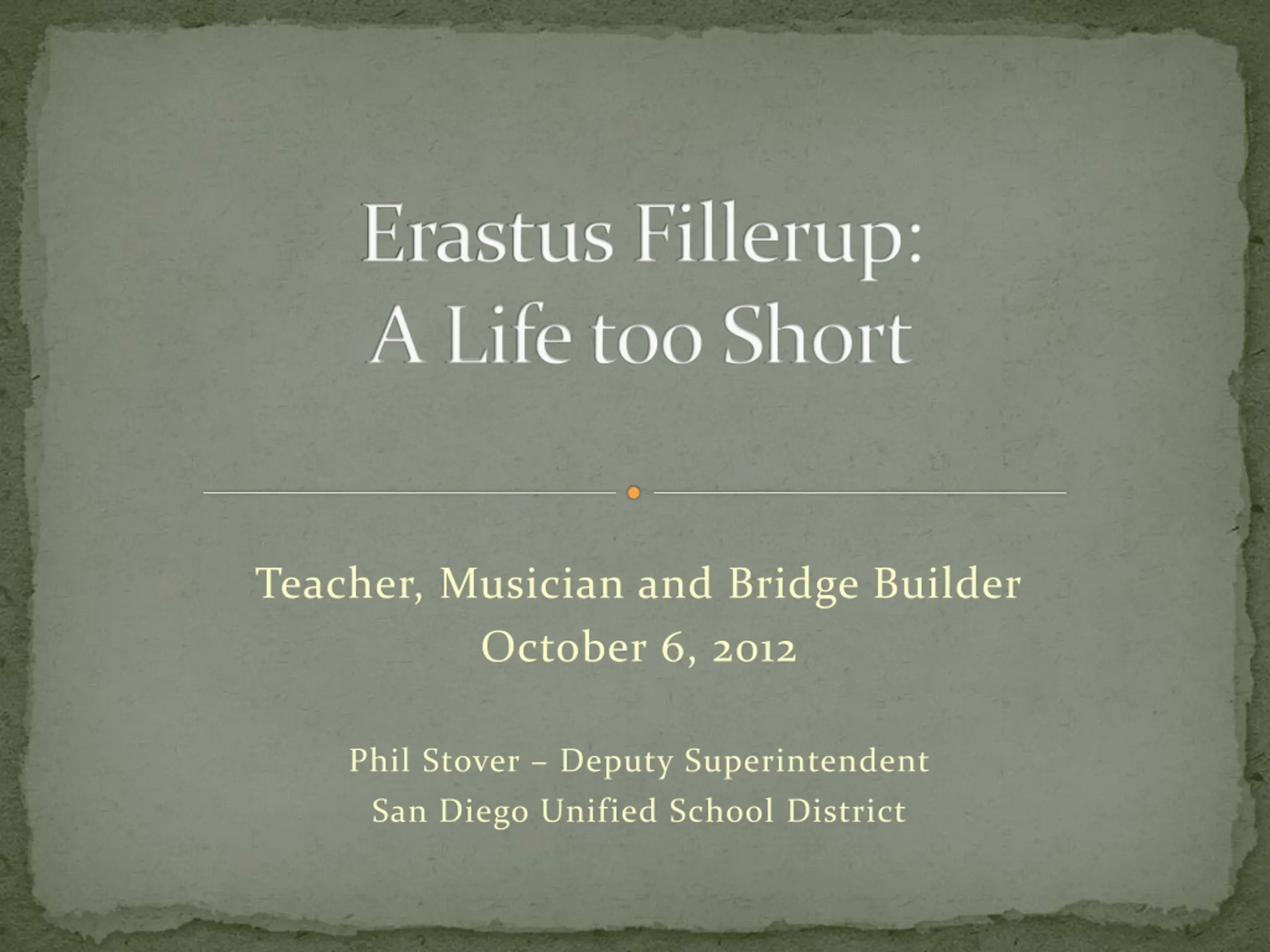 Erastus Fillerup: A Life too Short Teacher, Musician and Bridge Builder October 6, 2012 Phil Stover Deputy Superintendent San Diego Unified School District