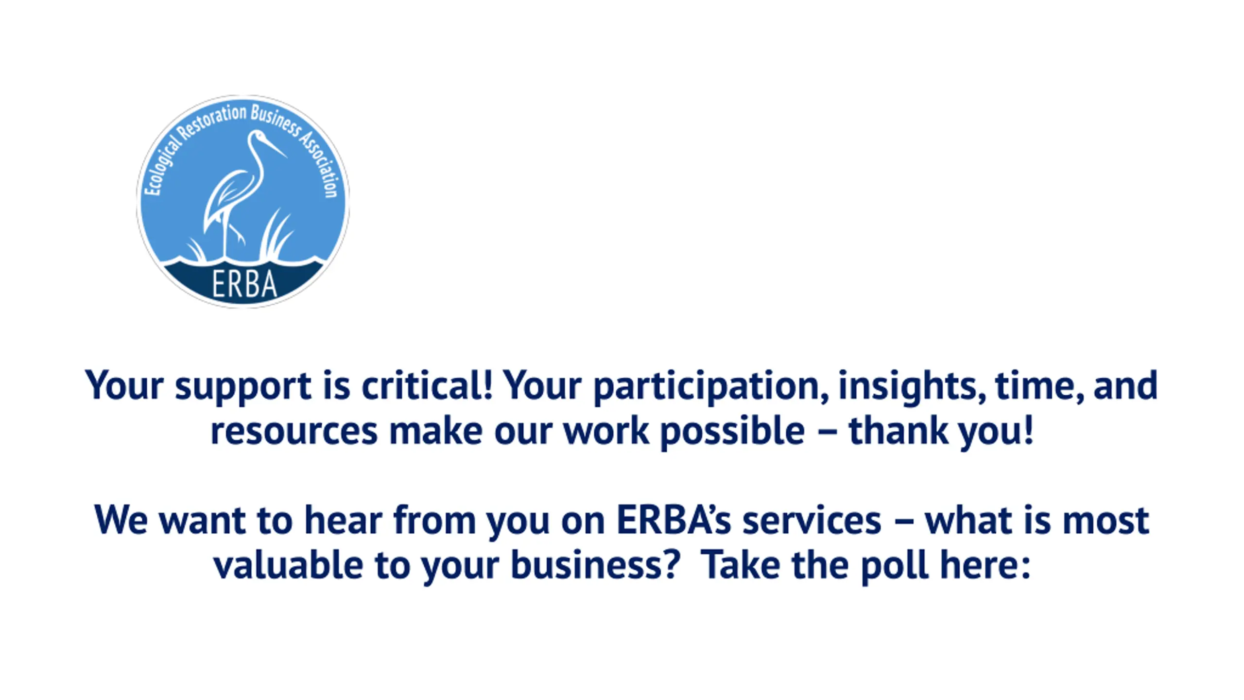 Your support is critical! Your participation, insights, time, and resources make our work possible thank you! We want to hear from you on ERBA s services what is most valuable to your business? Take the poll here: