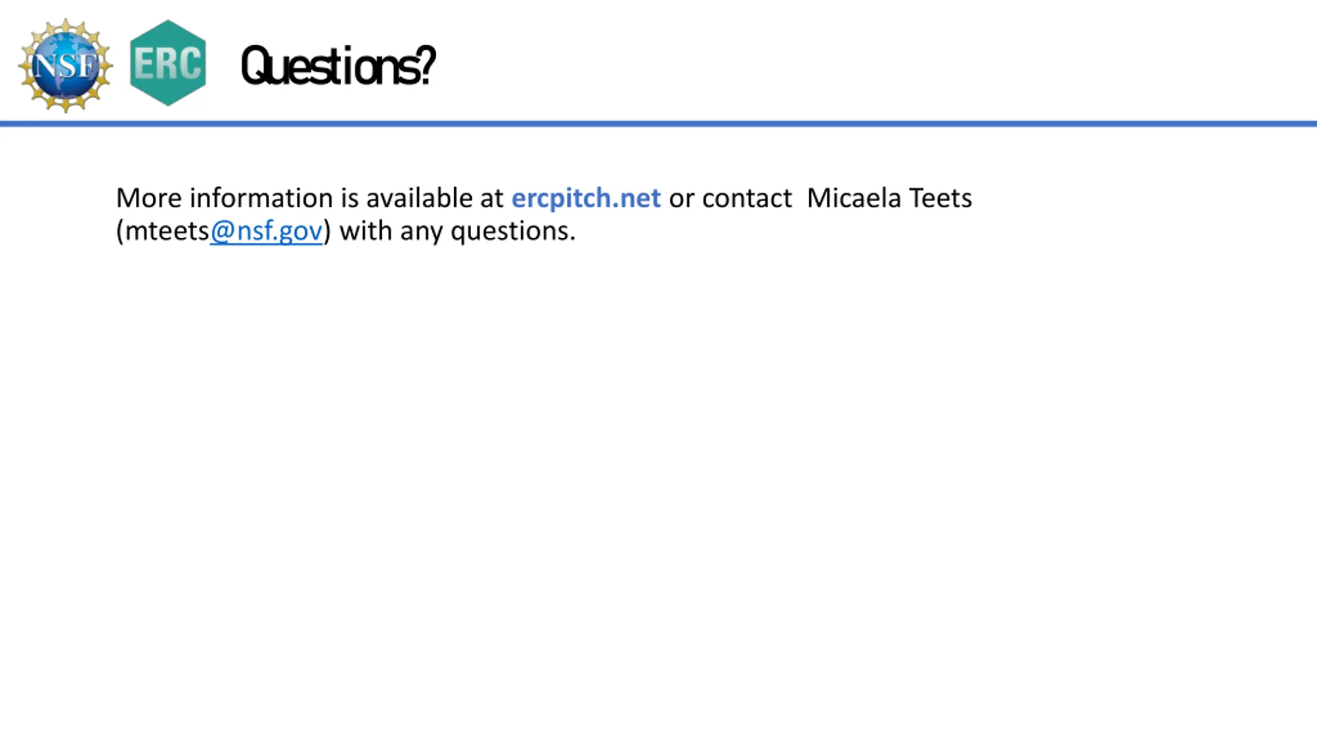 Q uestions? More information is available at ercpitch.net or contact Micaela Teets (mteets@nsf.gov) with any questions.