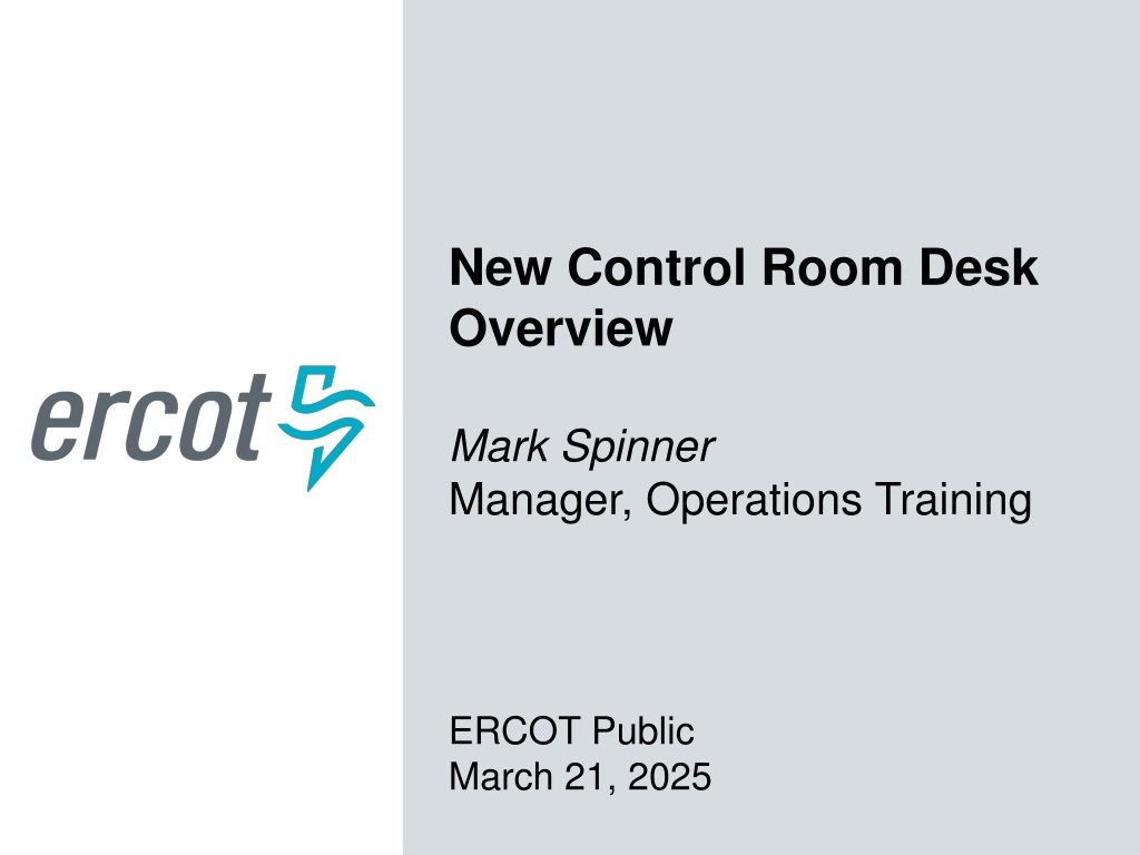 New Control Room Desk Overview Mark Spinner Manager, Operations Training ERCOT Public March 21, 2025