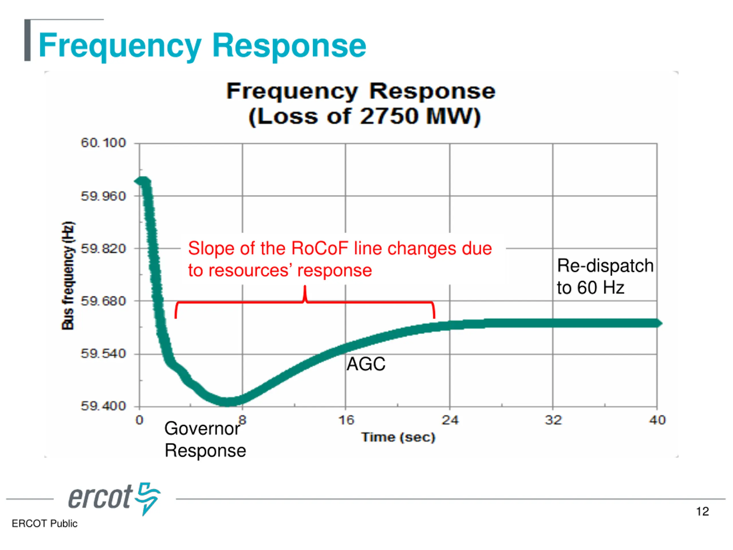 Frequency Response Initial rate of change of frequency (RoCoF) prior to any resource response is solely a function of inertia 11 ERCOT Public
