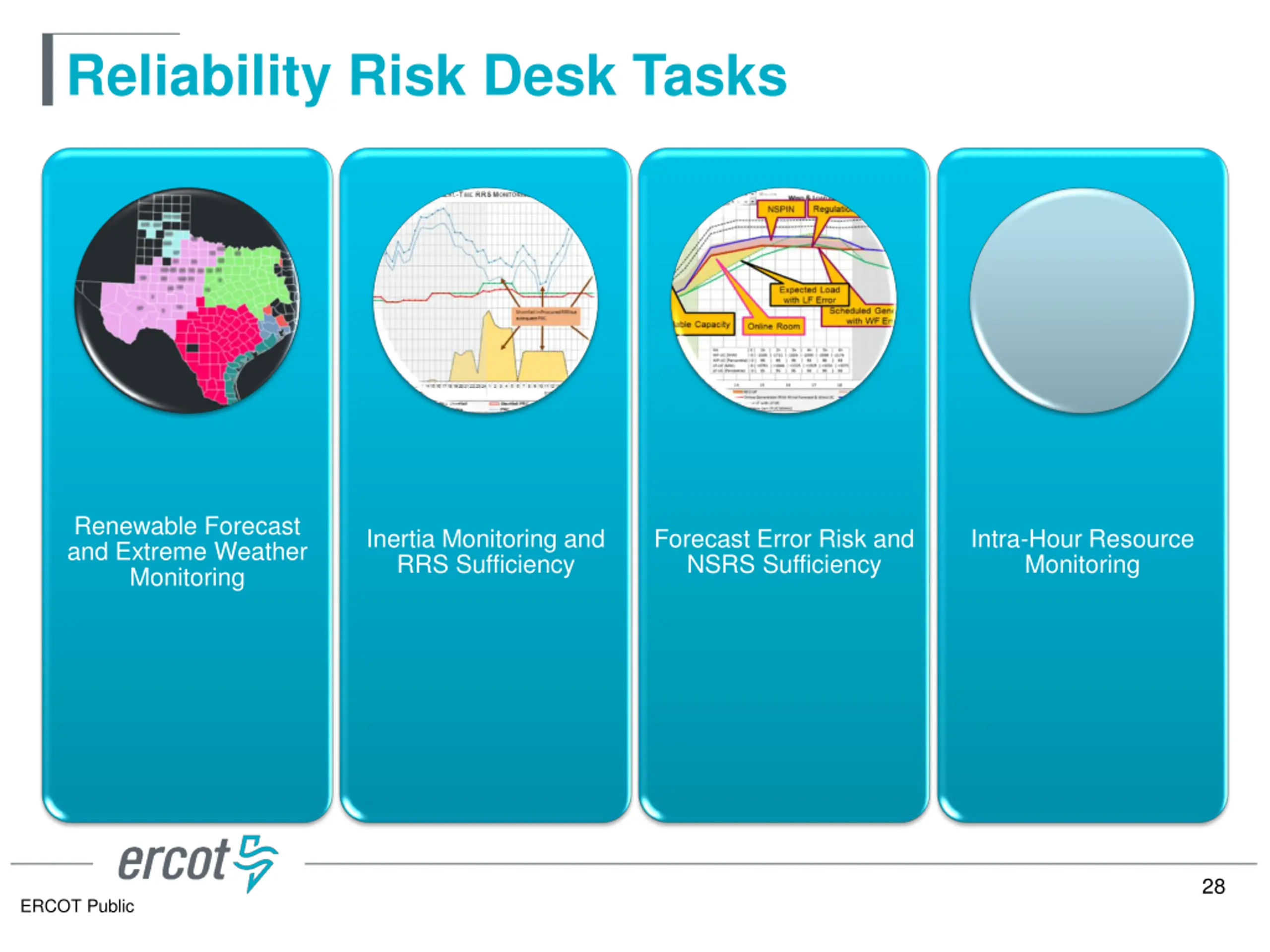 Reliability Risk Desk Goals Maintain sufficient temporally available capacity to cover remaining forecast errors and net load ramps 27 ERCOT Public