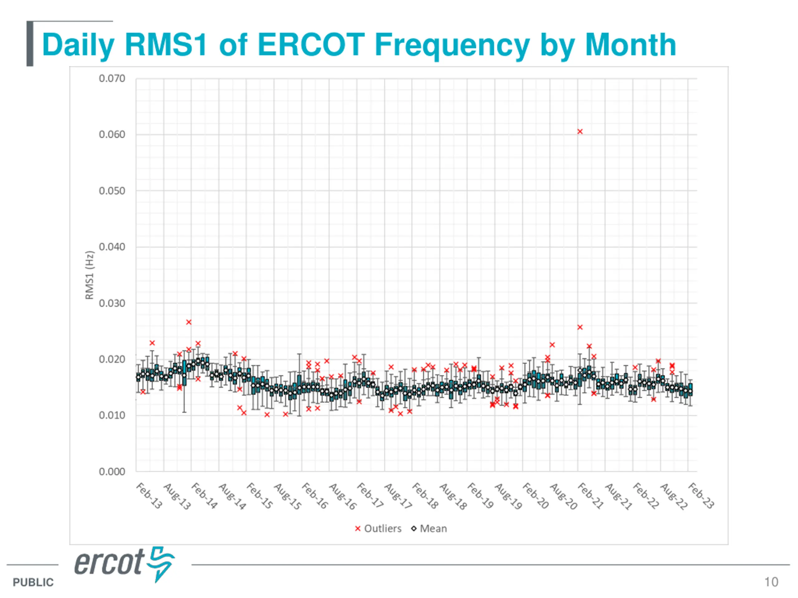Daily RMS1 of ERCOT Frequency by Month 10 PUBLIC