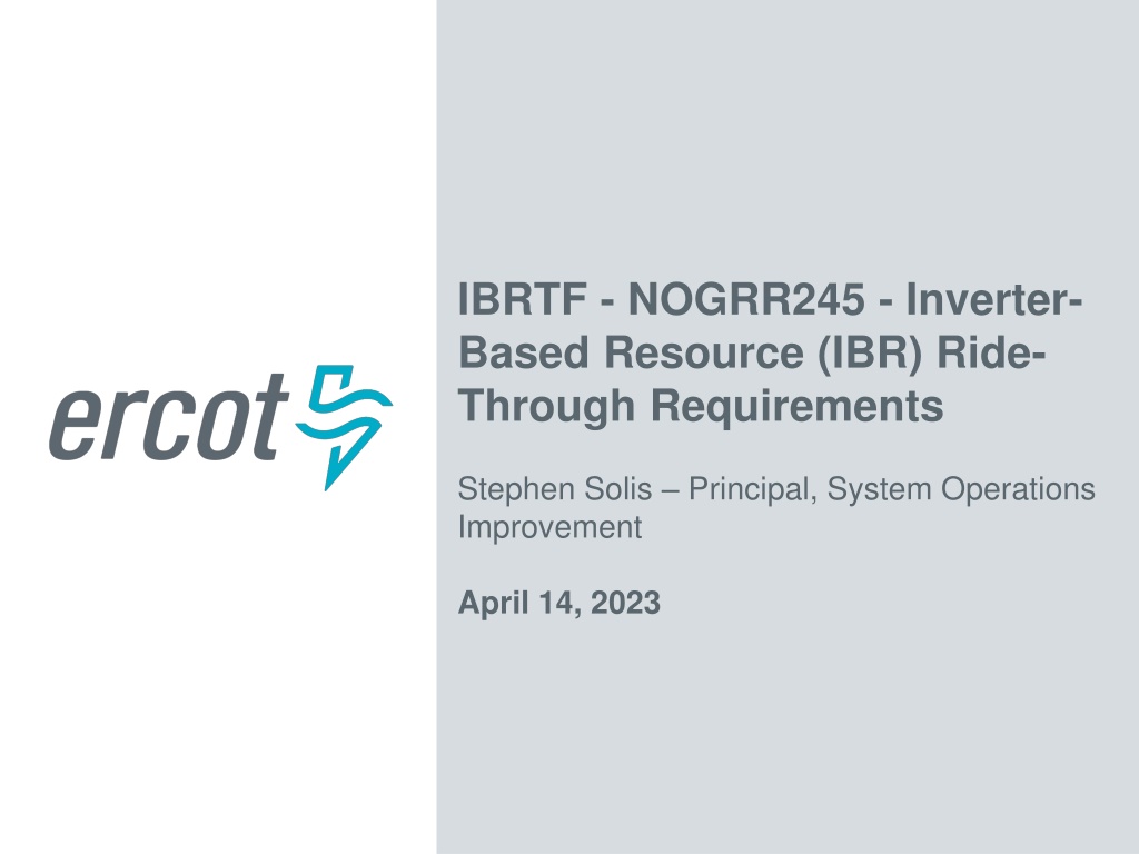 IBRTF - NOGRR245 - Inverter- Based Resource (IBR) Ride- Through Requirements Stephen Solis Principal, System Operations Improvement April 14, 2023