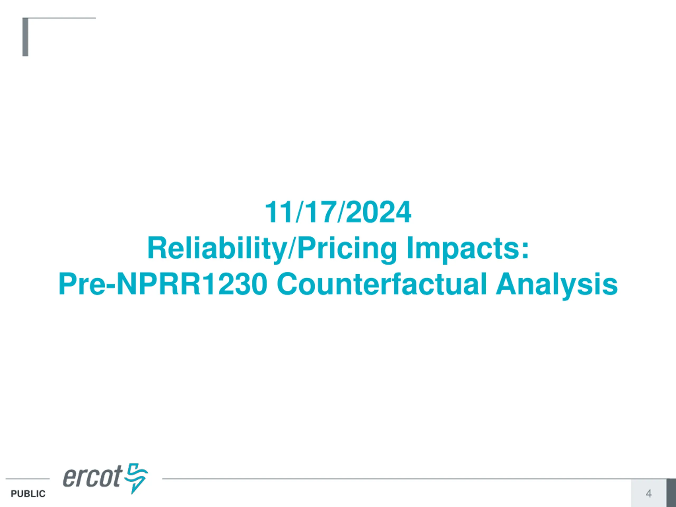 11/17/2024 Reliability/Pricing Impacts: Pre-NPRR1230 Counterfactual Analysis 4 PUBLIC