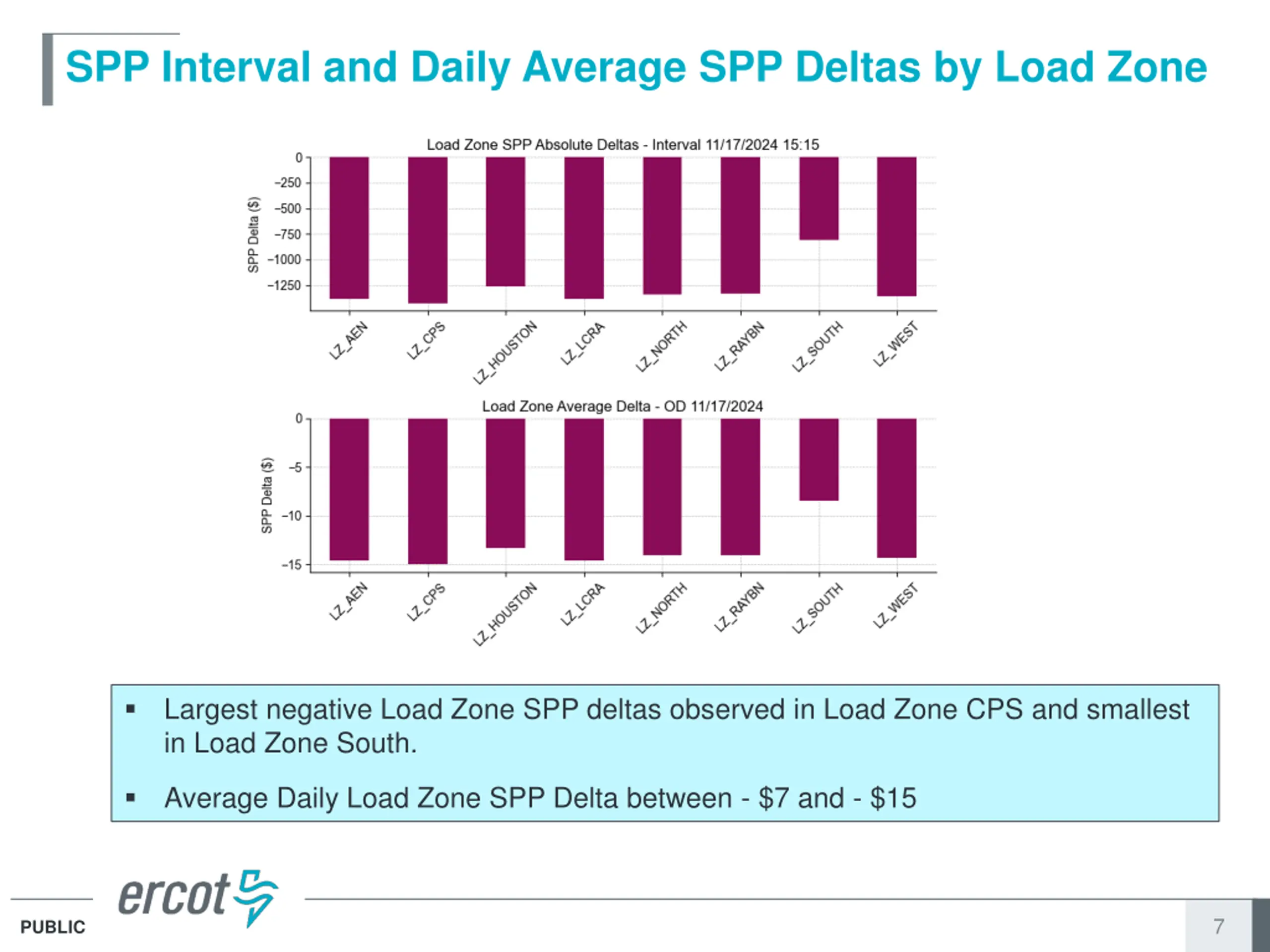SPP Interval and Daily Average SPP Deltas by Load Zone Largest negative Load Zone SPP deltas observed in Load Zone CPS and smallest in Load Zone South. Average Daily Load Zone SPP Delta between - $7 and - $15 7 PUBLIC