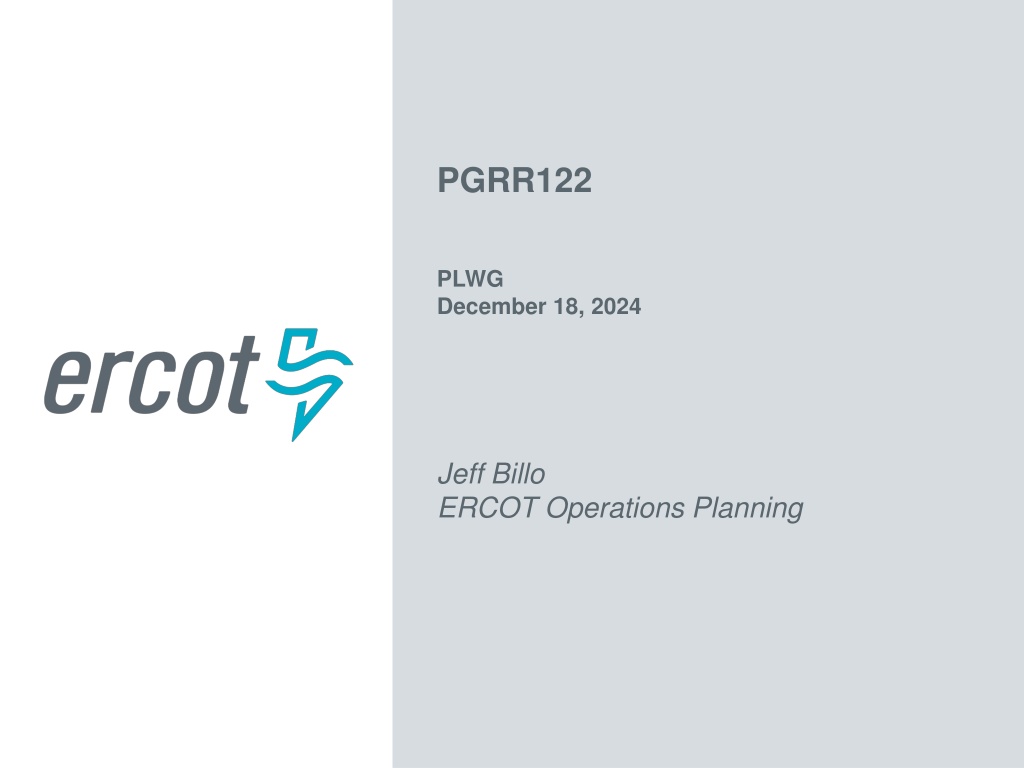 PGRR122 PLWG December 18, 2024 Jeff Billo ERCOT Operations Planning