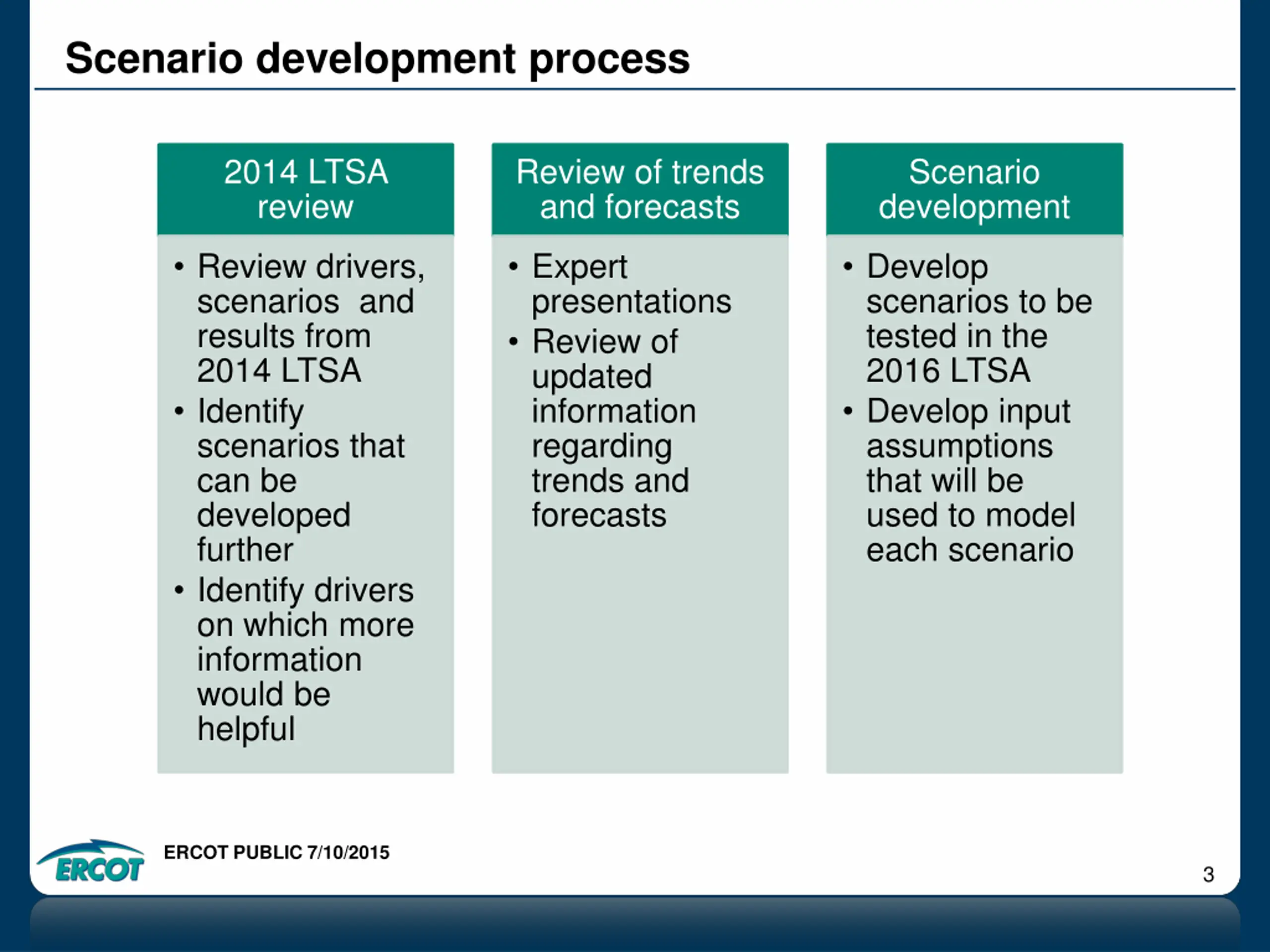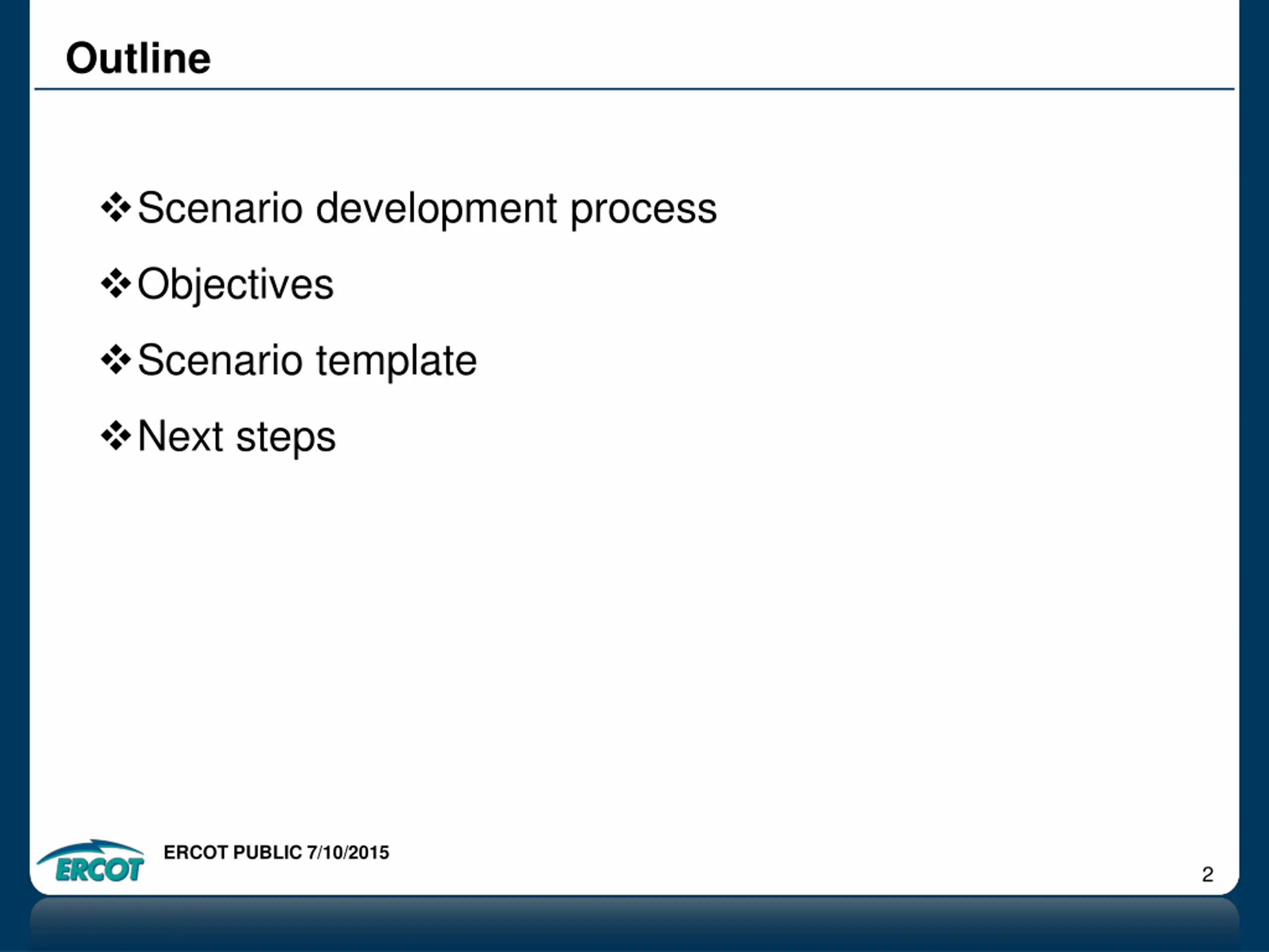 Outline Scenario development process Objectives Scenario template Next steps ERCOT PUBLIC 7/10/2015 2
