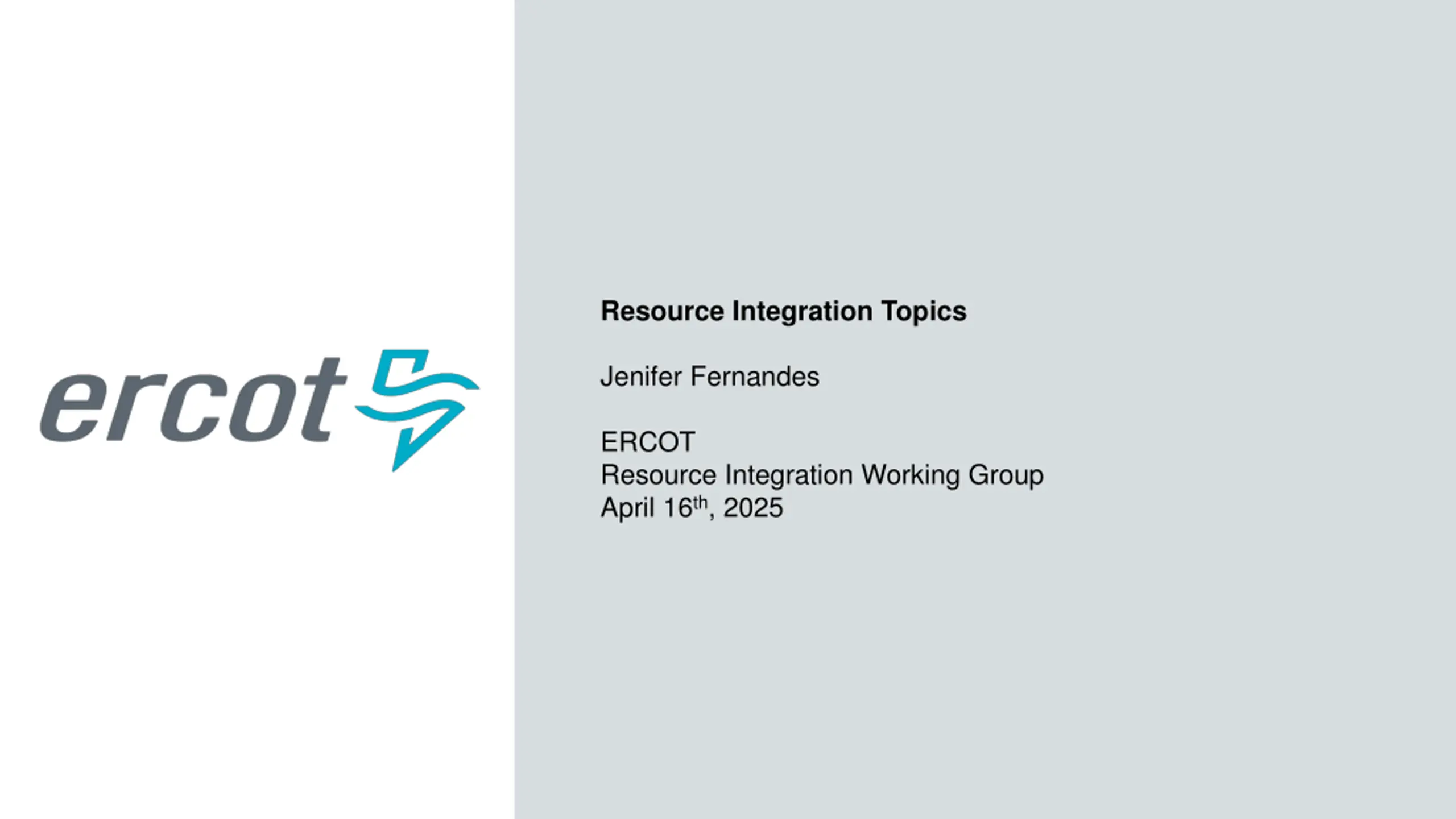 Resource Integration Topics Jenifer Fernandes ERCOT Resource Integration Working Group April 16th, 2025