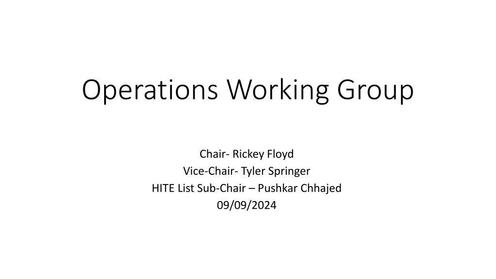 Operations Working Group Chair- Rickey Floyd Vice-Chair- Tyler Springer HITE List Sub-Chair Pushkar Chhajed 09/09/2024