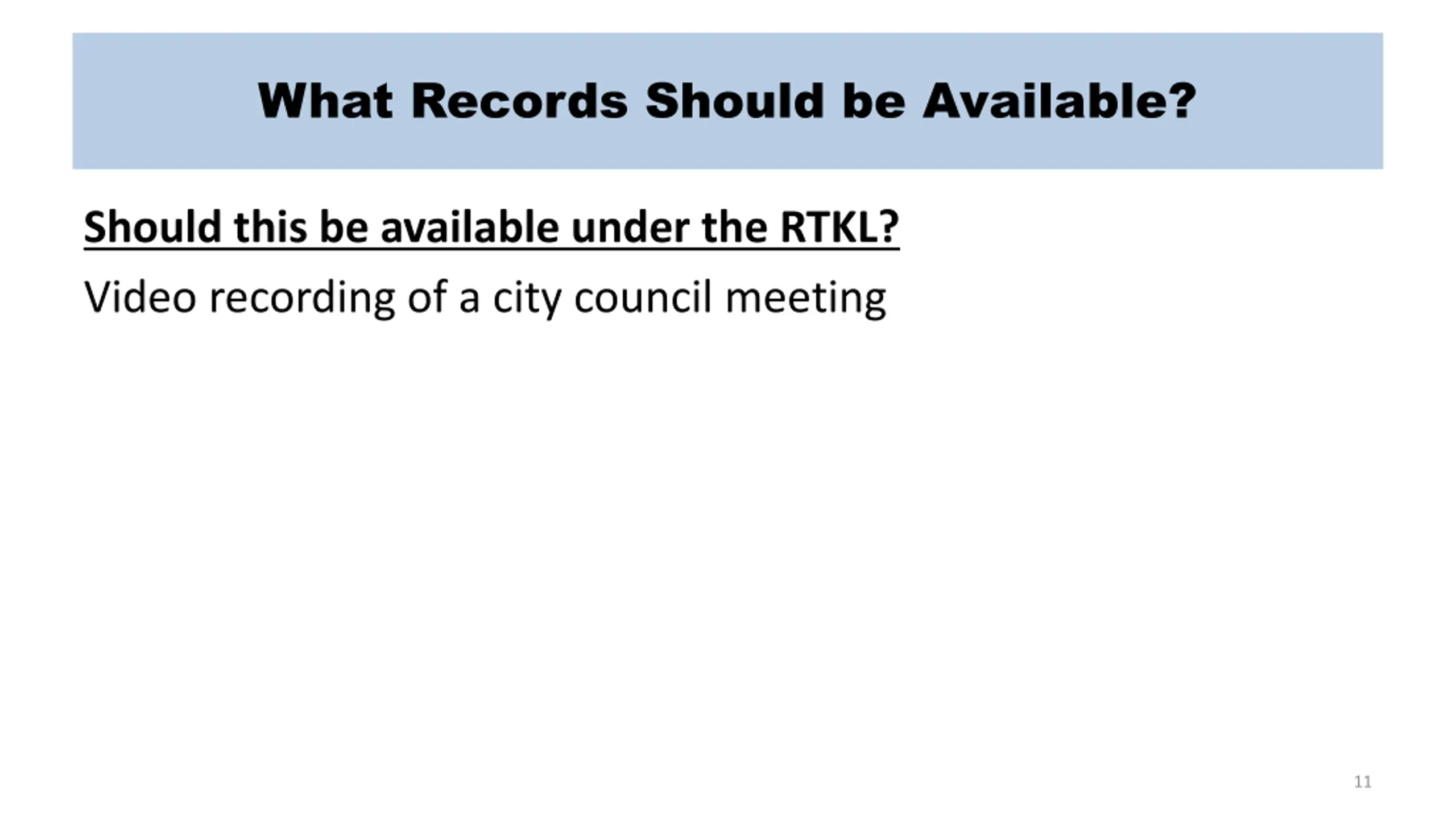 What Records Should be Available? Should this be available under the RTKL? Video recording of a city council meeting 11