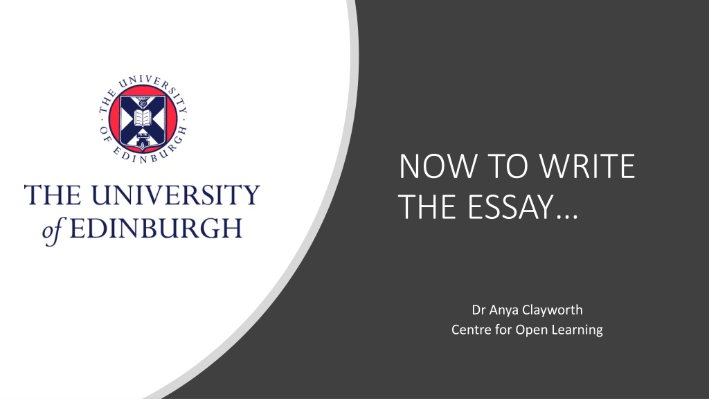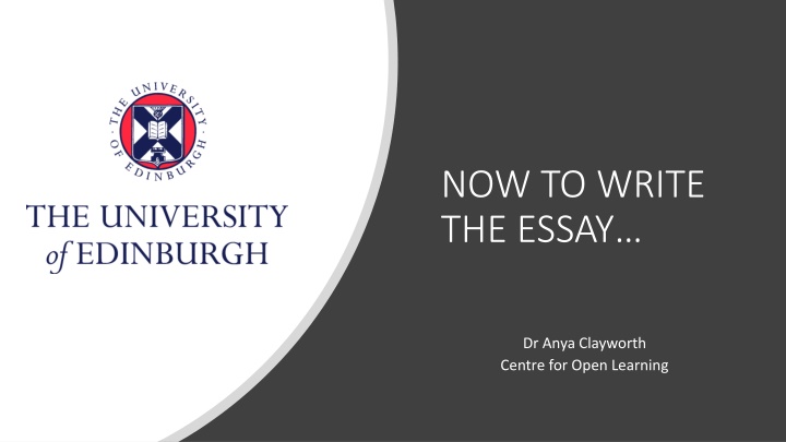 NOW TO WRITE THE ESSAY Dr Anya Clayworth Centre for Open Learning