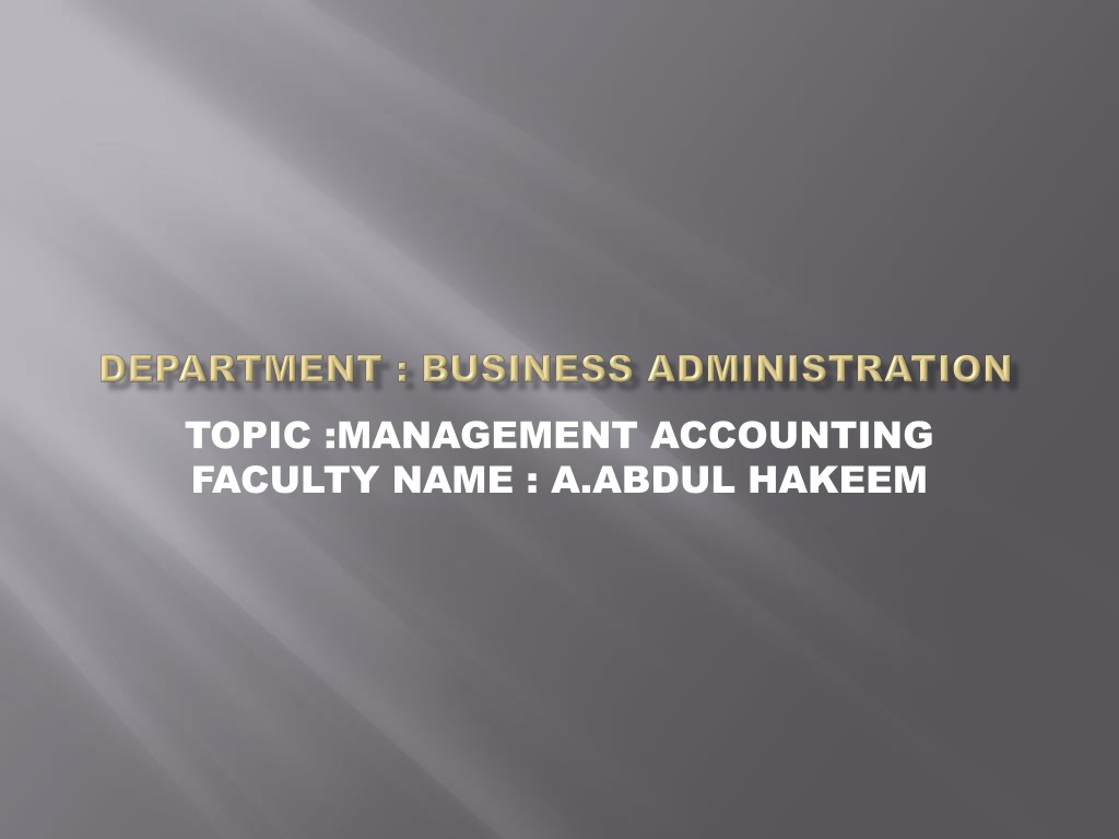 TOPIC :MANAGEMENT ACCOUNTING FACULTY NAME : A.ABDUL HAKEEM