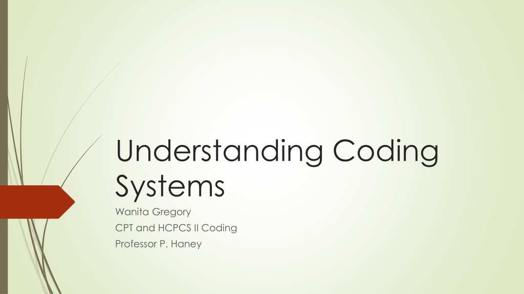 Understanding Coding Systems Wanita Gregory CPT and HCPCS II Coding Professor P. Haney