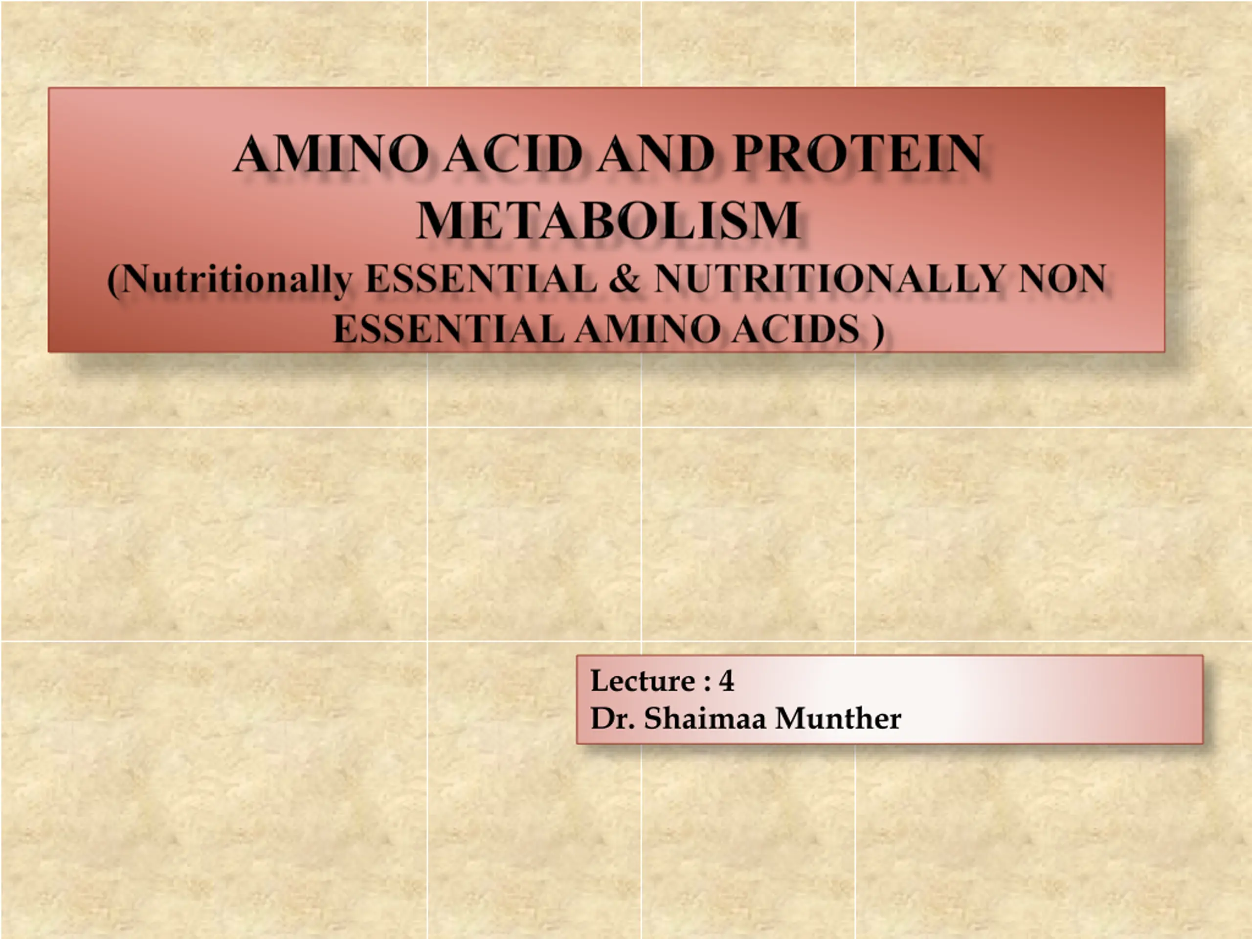 Lecture : 4 Dr. Shaimaa Munther