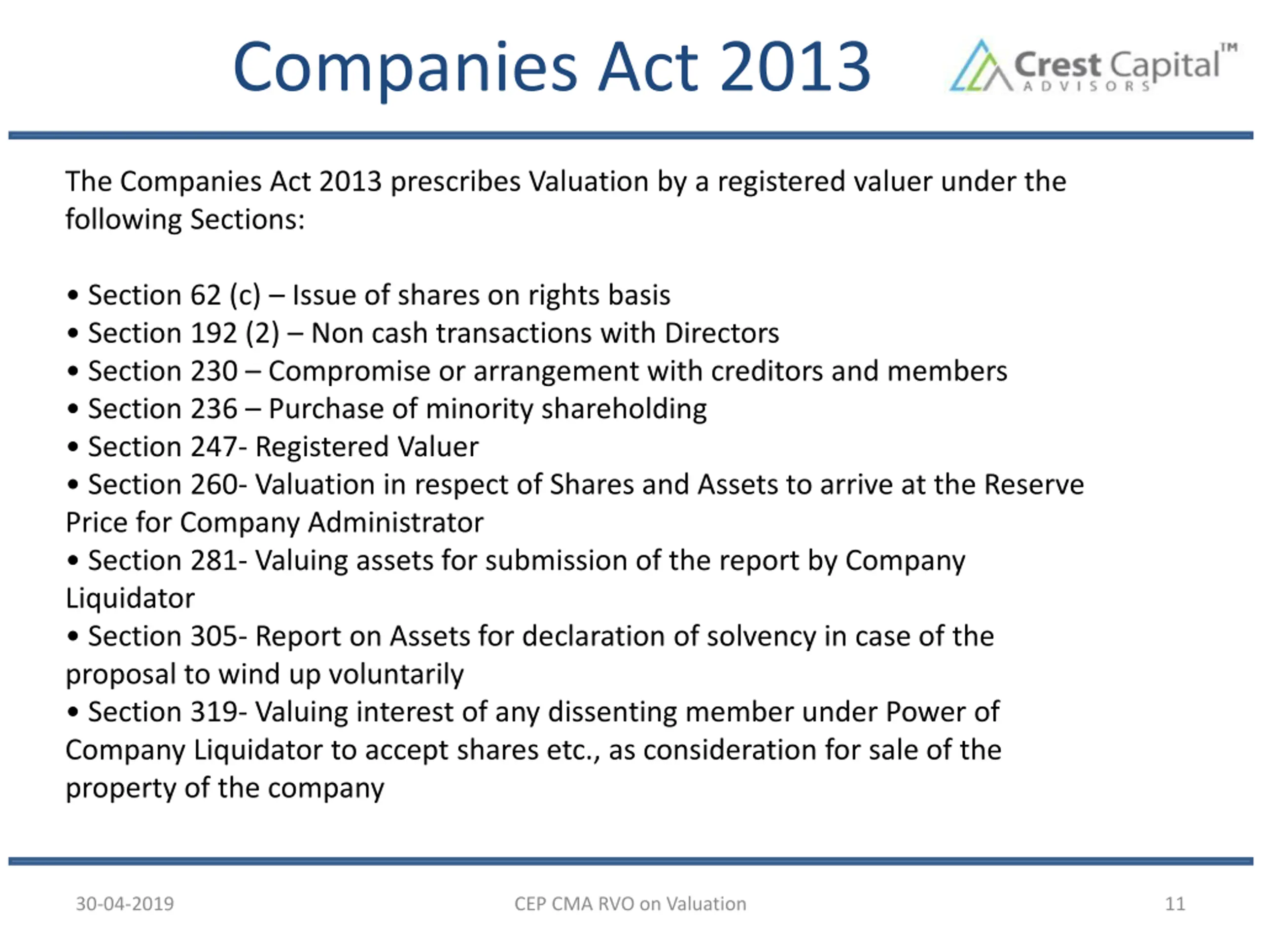 Key Pointers Valuation Scenario History Importance Statues 30-04-2019 CEP CMA RVO on Valuation 2