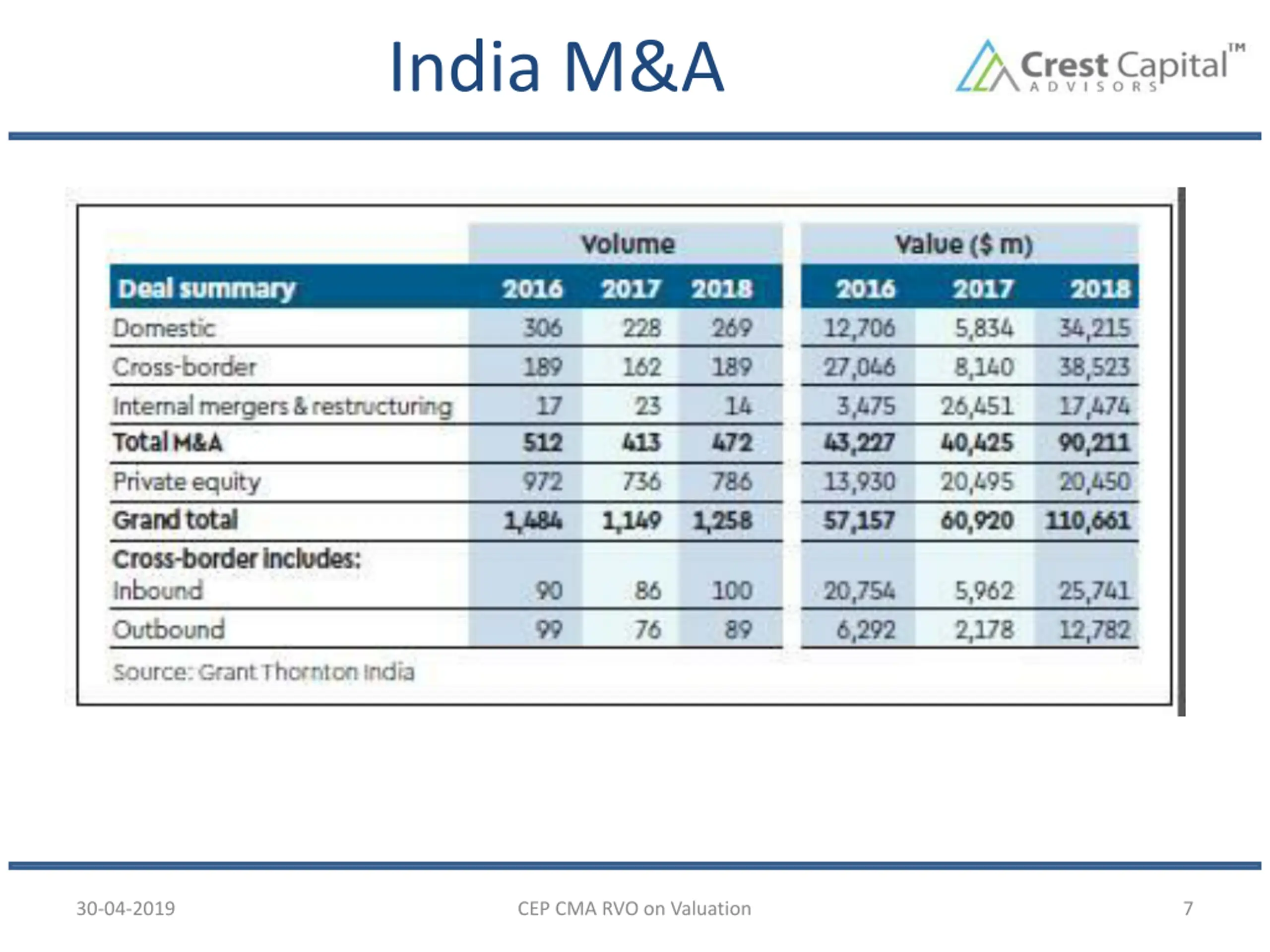 India M&A 30-04-2019 CEP CMA RVO on Valuation 7