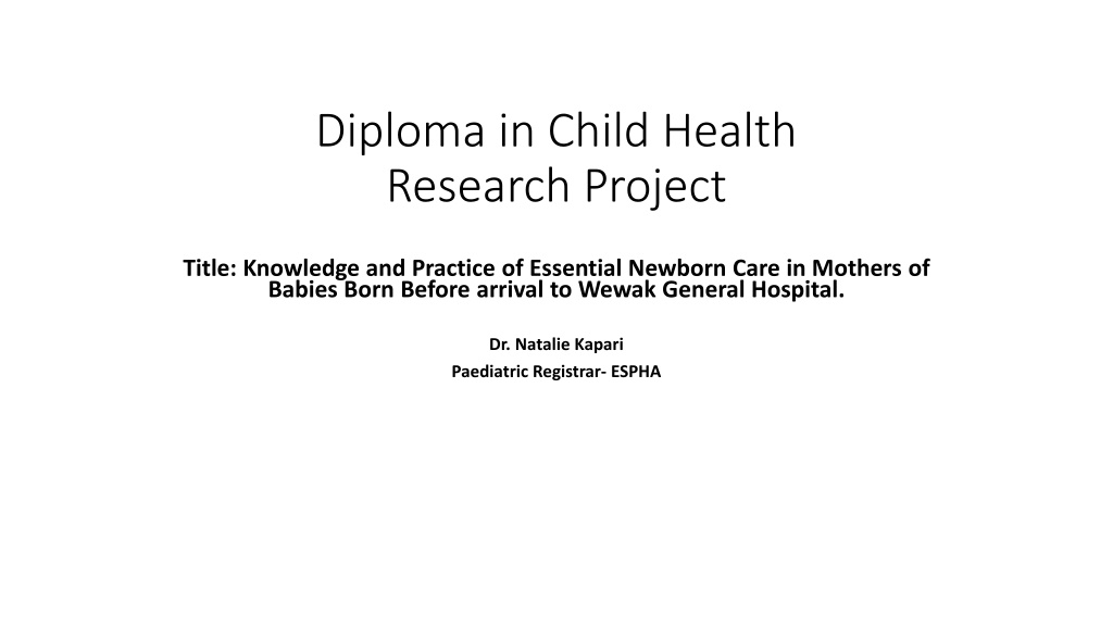 Diploma in Child Health Research Project Title: Knowledge and Practice of Essential Newborn Care in Mothers of Babies Born Before arrival to Wewak General Hospital. Dr. Natalie Kapari Paediatric Registrar- ESPHA