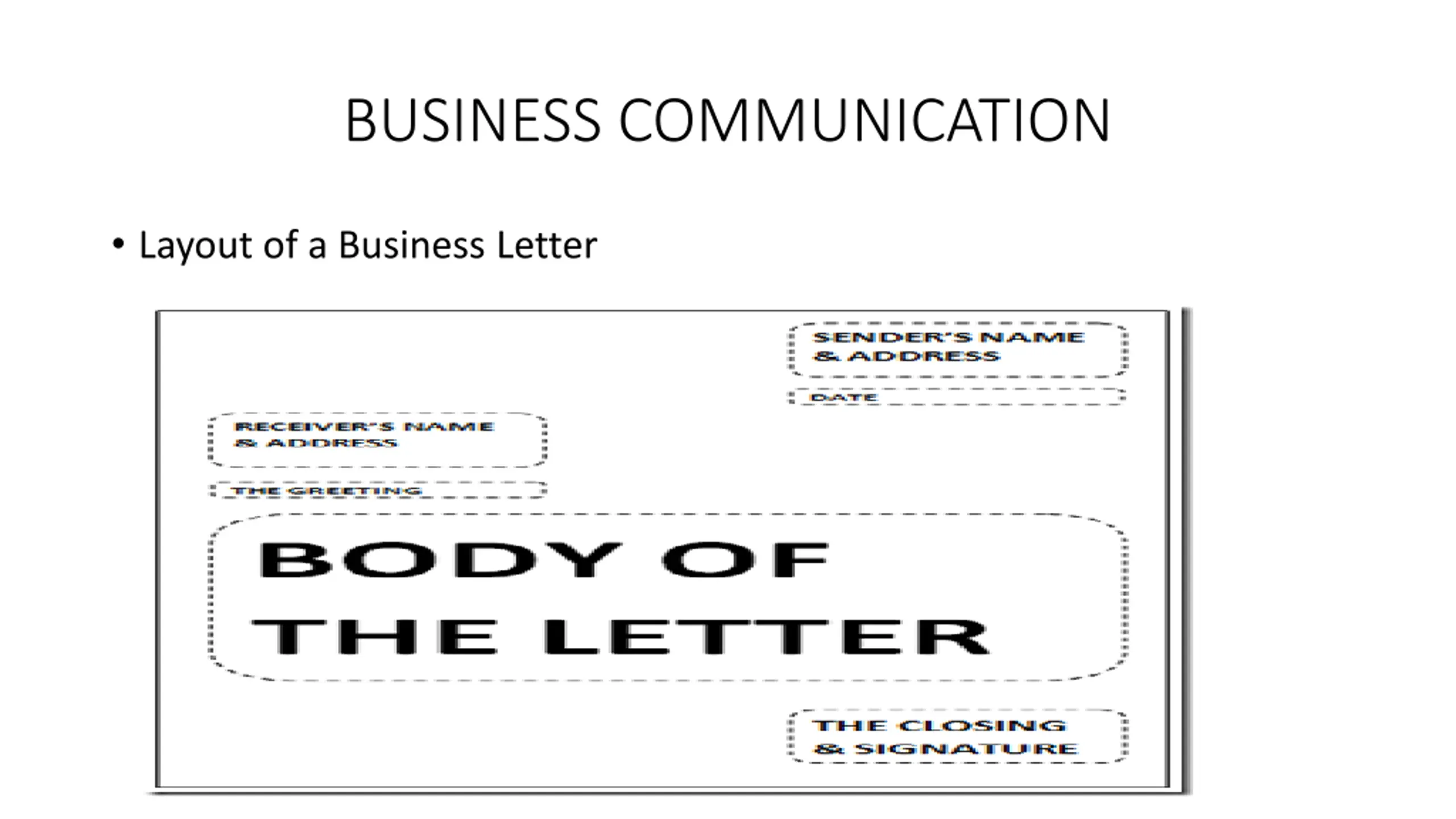 BUSINESS COMMUNICATION Layout of a Business Letter