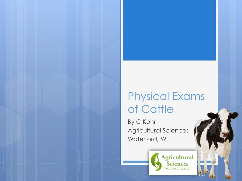 Physical Exams of Cattle By C Kohn Agricultural Sciences Waterford, WI