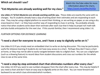 Daily Resources Posted in the 2021-2022 School Year Click here to find More Estimation Clipboards. Click here to find 150 New Esti-Mysteries. Daily Resources Posted in the 2020-2021 School Year C:\Users\Steve Wyborney\Desktop\STEVES Esti-Mystery Clue Toolkit and Templates FALL 2020.jpg C:\Users\Steve Wyborney\Desktop\Blog Post Pics and email too\Clipboard Dice.jpg C:\Users\Steve Wyborney\Desktop\Blog Post Pics and email too\Part 3 Feature Pic.jpg C:\Users\Steve Wyborney\Desktop\Part 4 Featured Pic.jpg Part 3 - New Esti-Mysteries and Number Sense Resources Every Day for the Rest of the School Year New Esti-Mysteries and Number Sense Resources Every Day for the Rest of the School Year Part 2 - New Esti-Mysteries and Number Sense Resources Every Day for the Rest of the School Year Part 4 - New Esti-Mysteries and Number Sense Resources Every Day for the Rest of the School Year More Free, Downloadable Resources From Blog Posts C:\Users\Steve Wyborney\Desktop\20 Days Title Pic.jpg C:\Users\Steve Wyborney\Desktop\SPLAT blog post folder\Splat Promo Images and GIFs\Splat Level 3 B.jpg C:\Users\Steve Wyborney\Desktop\Splat Promos HUGE SET\Slide6.JPG C:\Users\Steve Wyborney\Desktop\Presentation1.jpg C:\Users\Steve Wyborney\Desktop\8.8.2018 Desktop\Estimation Clipboard Desktop Materials\Bundle 1 Glasses Pic.jpg 20 Days of Number Sense Rich Math Talk 51 Esti-Mysteries The Original 50 Splat! Lessons 20 Days of Number Sense & Rich Math Talk 51 Esti-Mysteries The Original 20 Fraction Splat! Lessons 80 Cube Conversations Lessons The Original 40 Estimation Clipboard Sets The Multiplication Course (a free course for students and teachers) For more information read the blog post about The Multiplication Course here. To view the course on YouTube: 1. Click here to see the chapter playlists on my YouTube channel. 2. You ll see all 12 chapters in the course. 3. Each chapter includes a sequence of lessons for students.