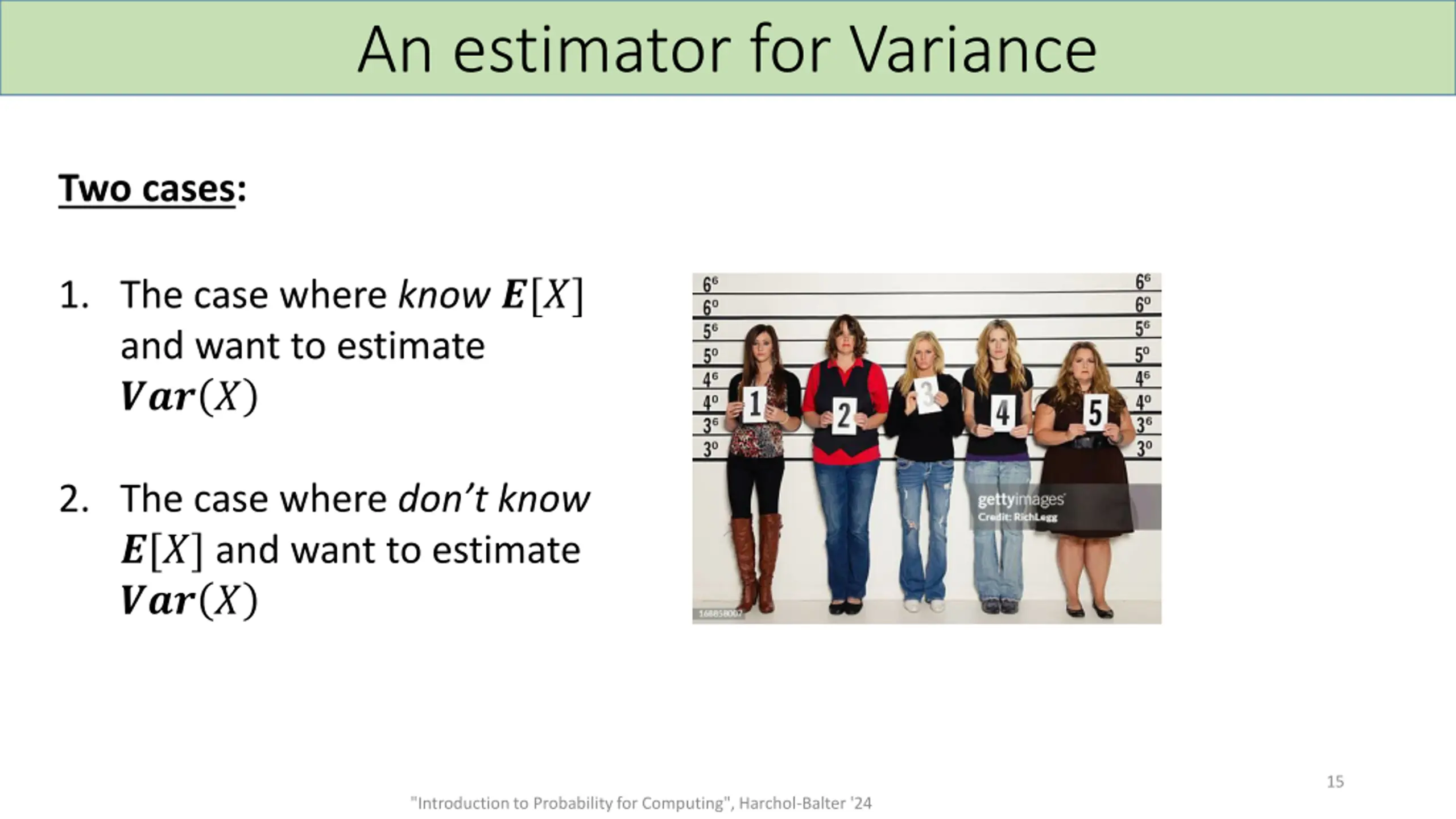 An estimator for Variance Two cases: 1. The case where know?[?] and want to estimate ??? ? 2. The case where don t know ?[?] and want to estimate ??? ? 15 "Introduction to Probability for Computing", Harchol-Balter '24