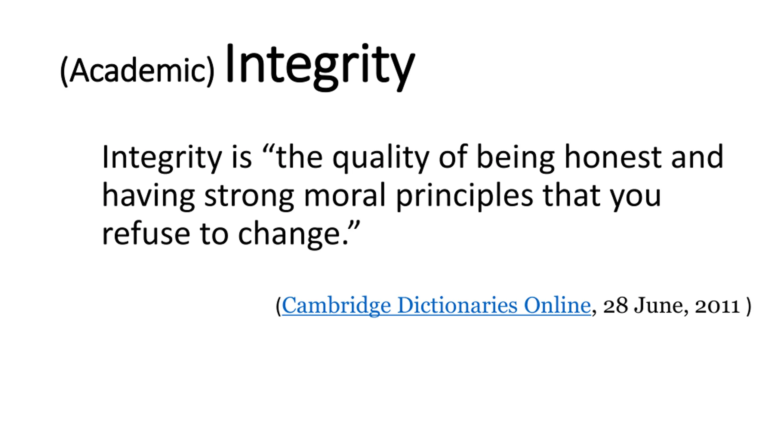 (Academic) (Academic) Integrity Integrity Integrity is the quality of being honest and having strong moral principles that you refuse to change. (Cambridge Dictionaries Online, 28 June, 2011 )