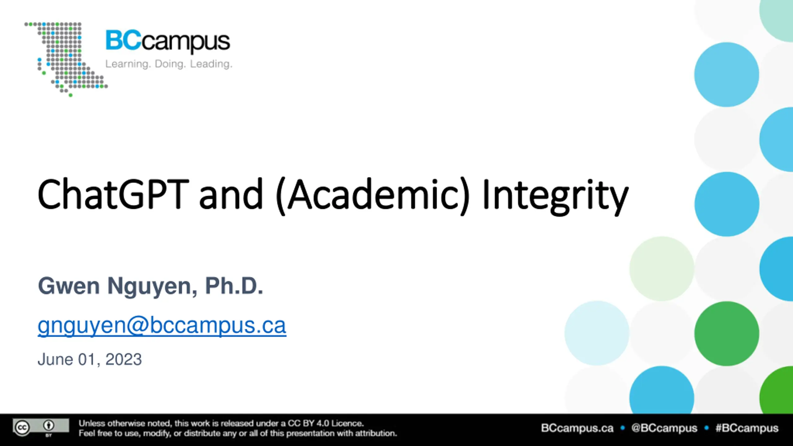 ChatGPT ChatGPT and (Academic) Integrity and (Academic) Integrity Gwen Nguyen, Ph.D. gnguyen@bccampus.ca June 01, 2023