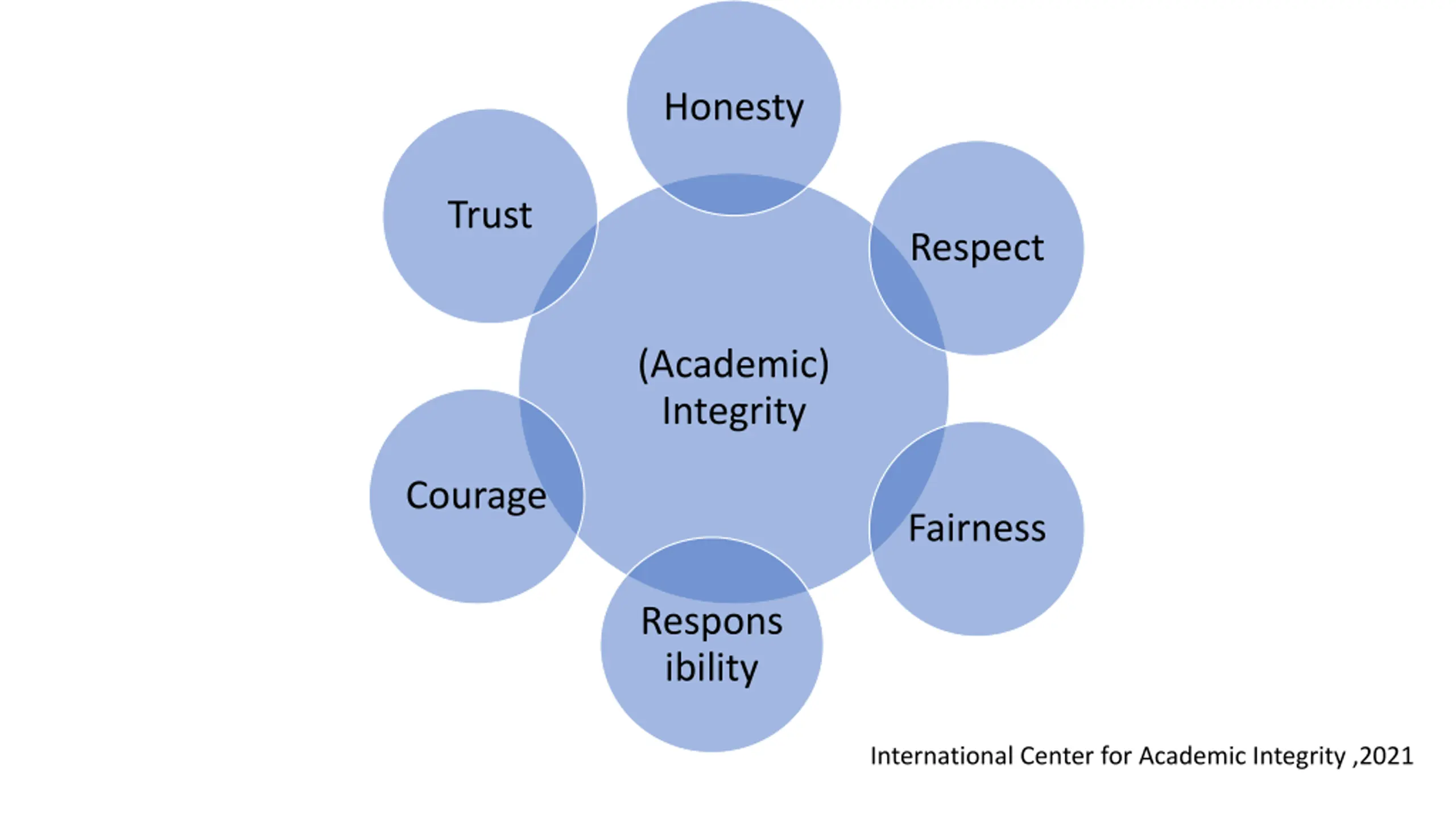 Honesty Trust Respect (Academic) Integrity Courage Fairness Respons ibility International Center for Academic Integrity ,2021