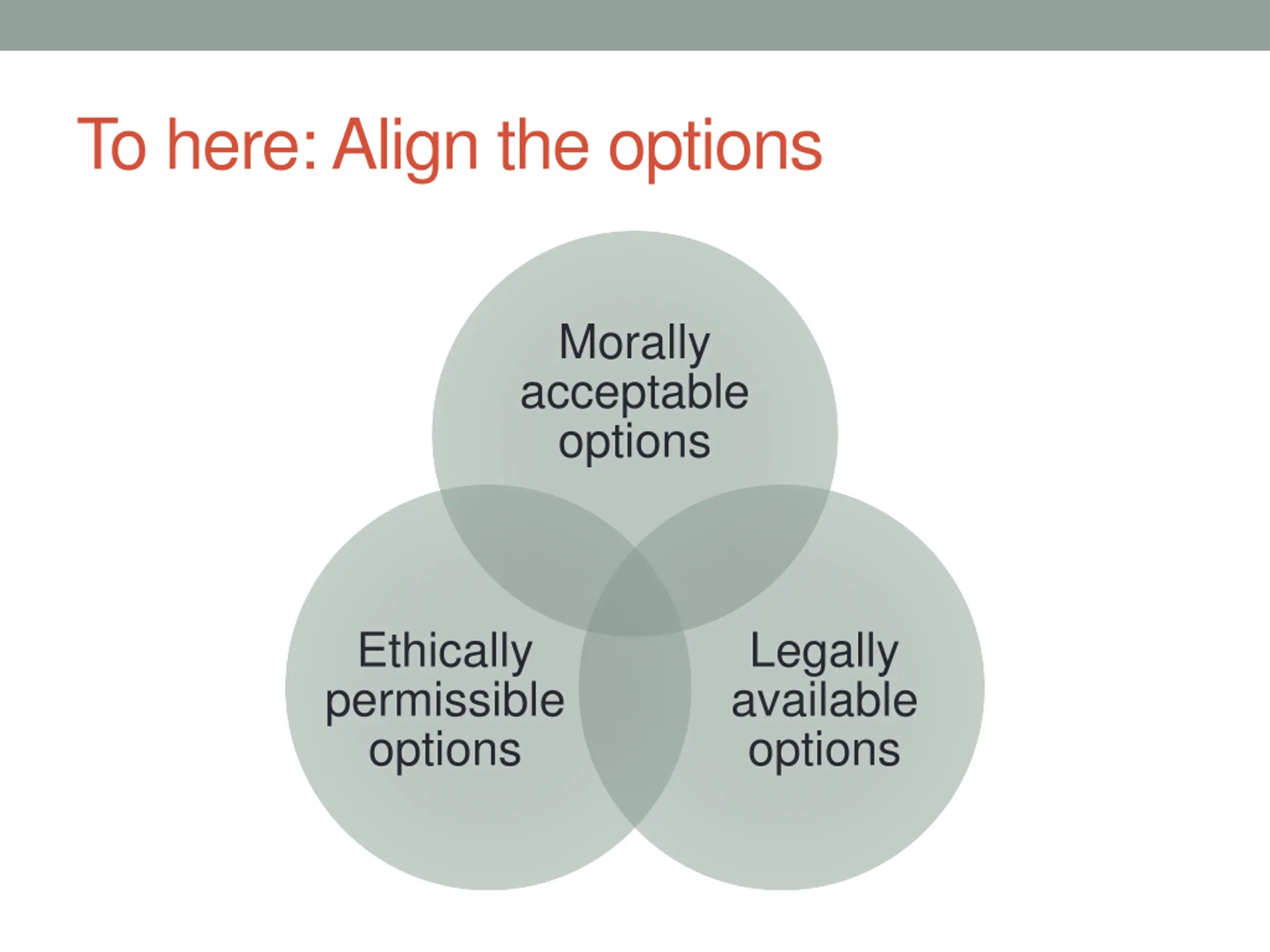 To here: Align the options Morally acceptable options Ethically permissible options Legally available options