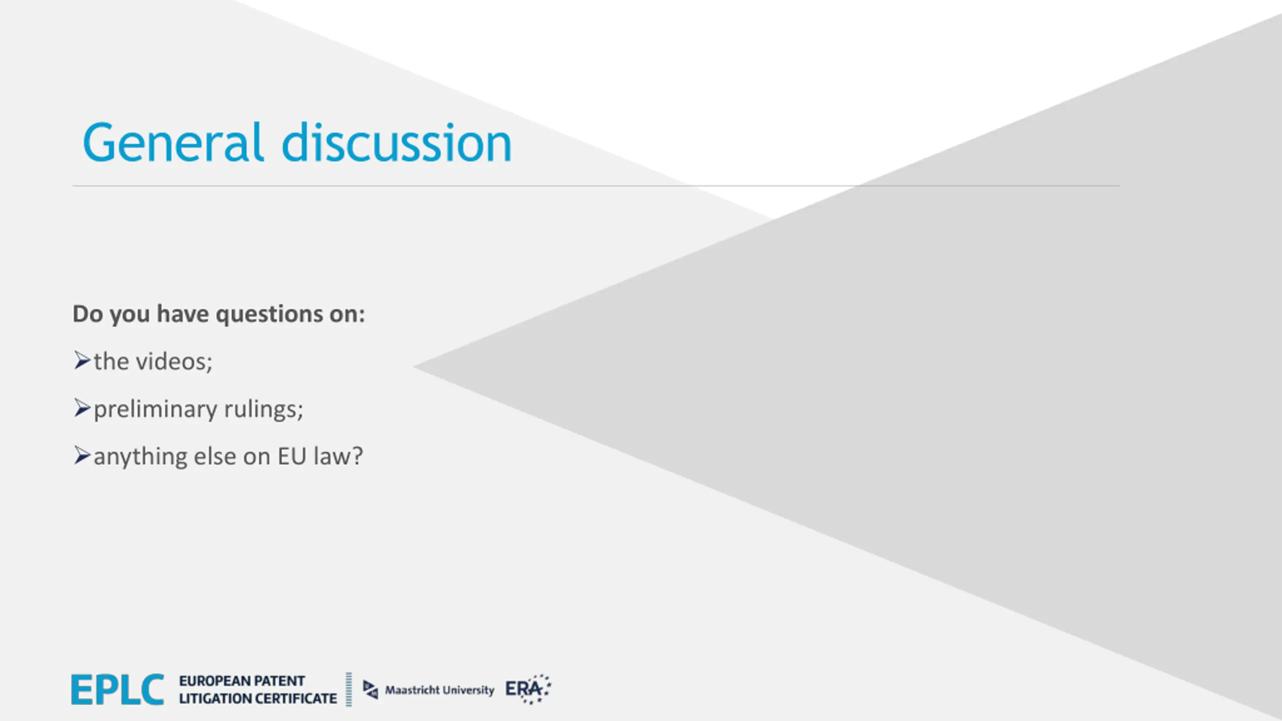 General discussion Do you have questions on: the videos; preliminary rulings; anything else on EU law?
