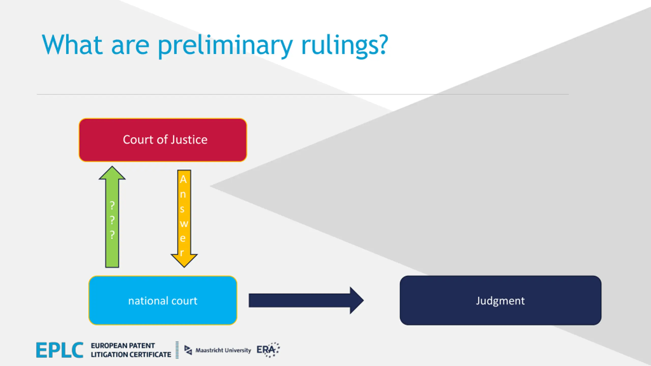 What are preliminary rulings? Court of Justice A n s w e r ? ? ? national court Judgment