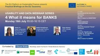 DEMOCRATISATION OF THE FINANCIAL MARKET Other areas of intervention of the EU Taxonomy: alignment of interests between investors, consumers AND workers Remuneration of top managers a larger and inclusive access of people, investments in education and tackling financial illiteracy Some European experiences show that such democratisation of the economy can start from the workplace and employees participation schemes with redistributive, and better corporate governance objectives Social enterprise economy should be valued Specific instruments tailored on SMEs without exempting them from sustainability requirements