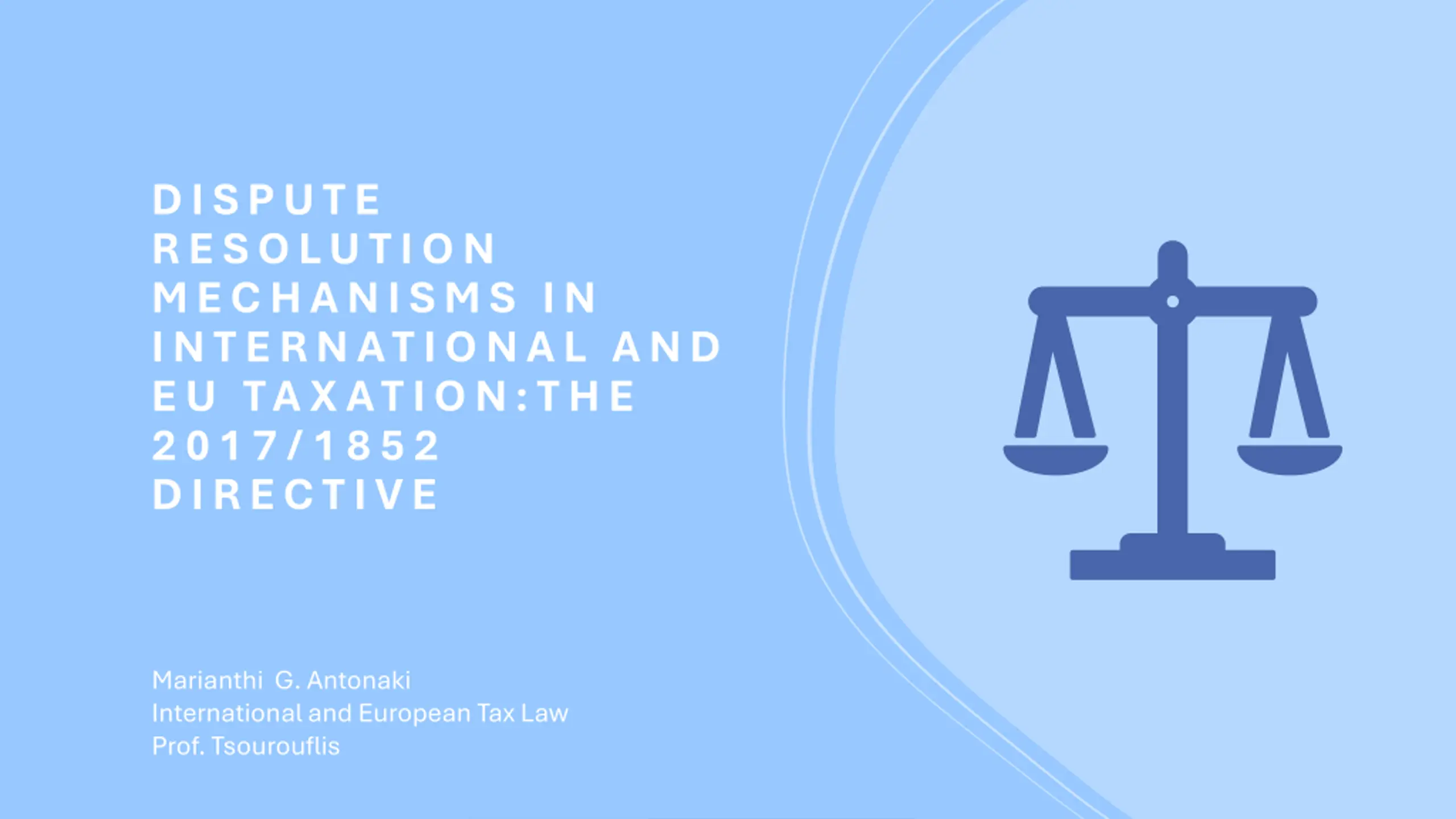 DISPUTE R ESOLUTION MECHANISMS IN INTER NATIONA L A ND EU TA X ATION:TH E 2017/ 1852 DIRECTIVE Marianthi G. Antonaki International and European Tax Law Prof. Tsourouflis