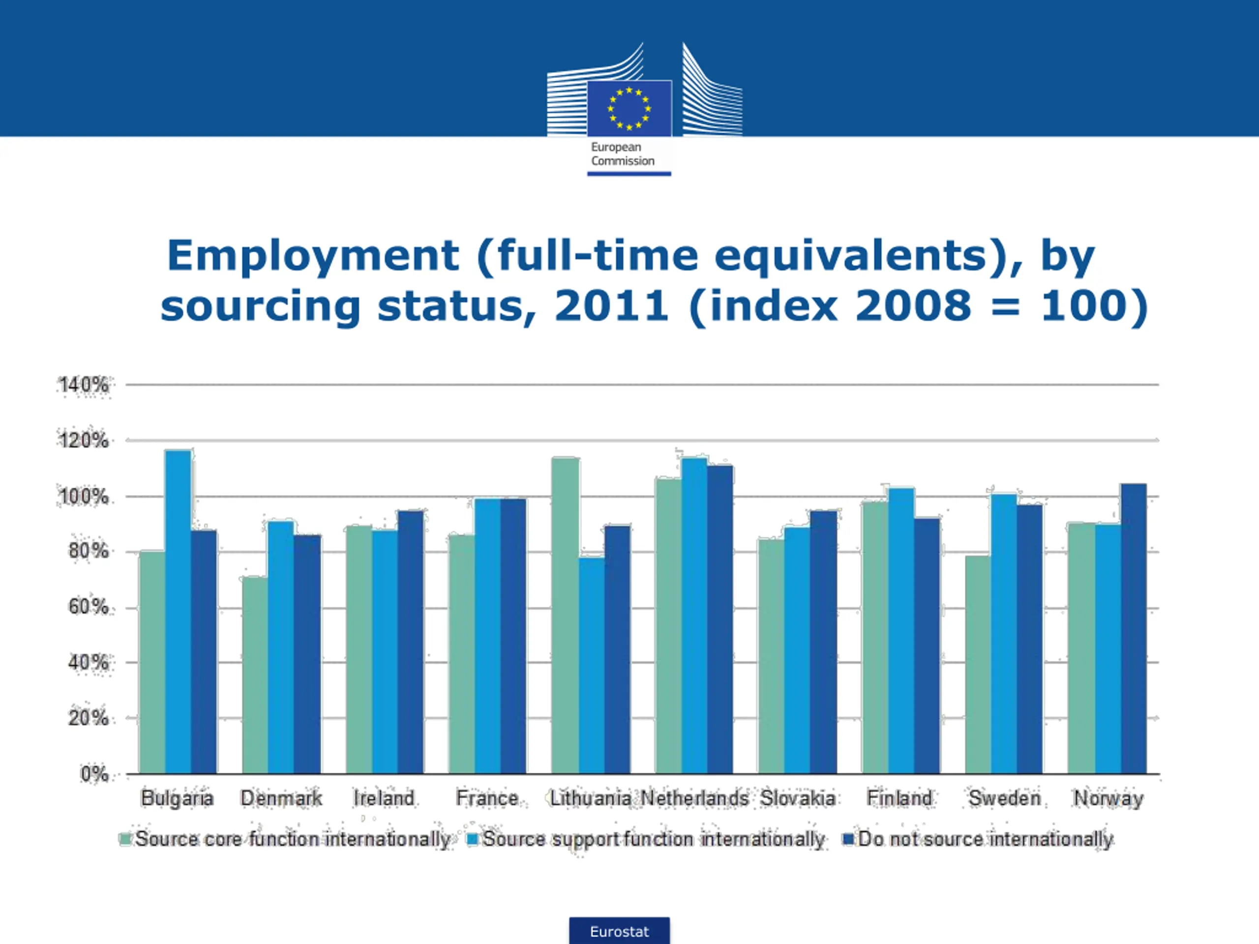 Employment in foreign controlled enterprises by sourcing status, 2011 (index 2008 = 100) Eurostat