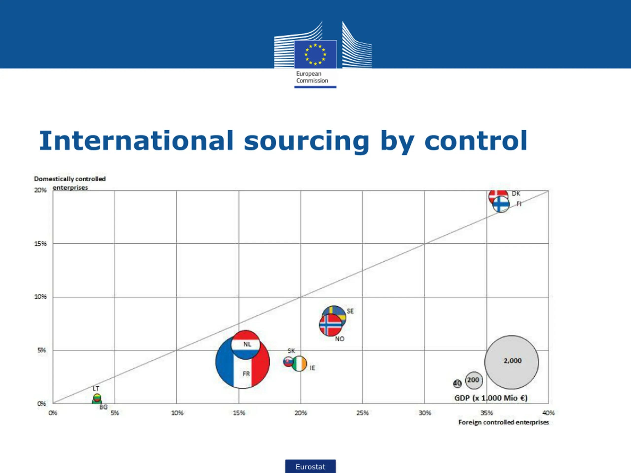 MDL project: some results Ten countries participated. In most countries employment grew less or fell more between 2008 and 2011 internationally than in enterprises who did not. Foreign-controlled enterprises are much more active in international sourcing and domestically controlled enterprises. In all countries a majority internationally to only one region. In most countries export intensity grew less or fell more between 2008 and 2011 internationally when compared with enterprises who did not. in enterprises sourcing international trade than of enterprises sourced in enterprises sourcing Eurostat