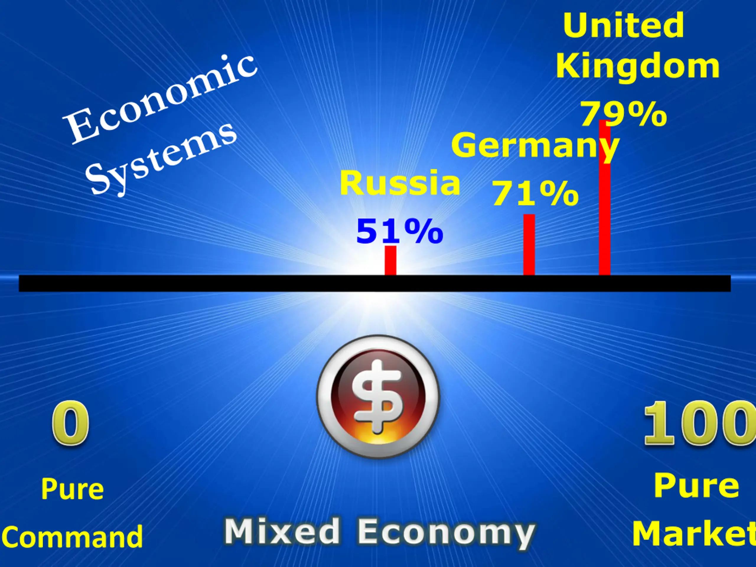 United Kingdom 79% Germany 71% Russia 51% Pure Market Pure Command